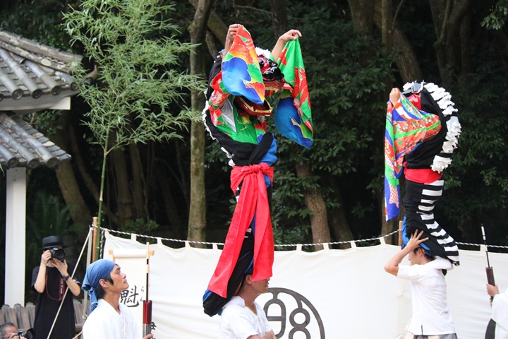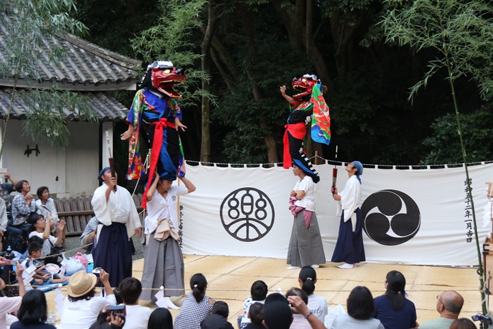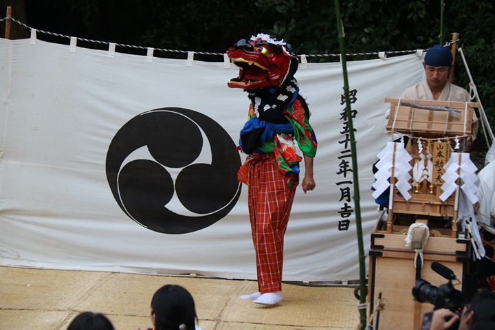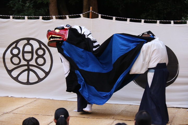 ![]() 恒例の獅子噛み。 |