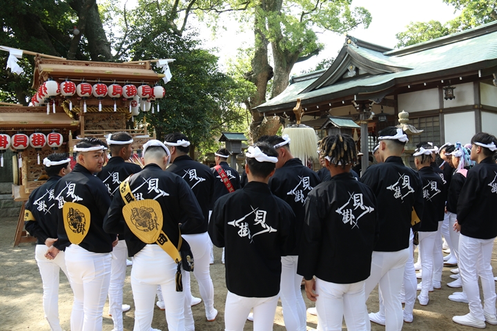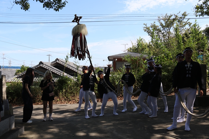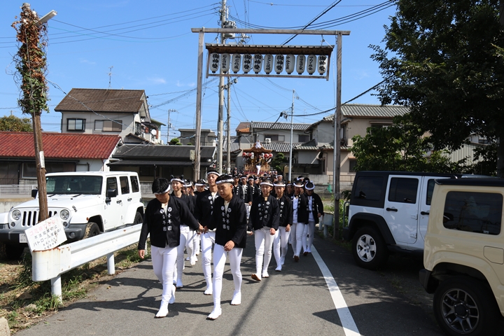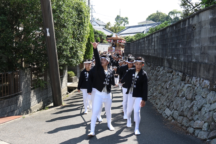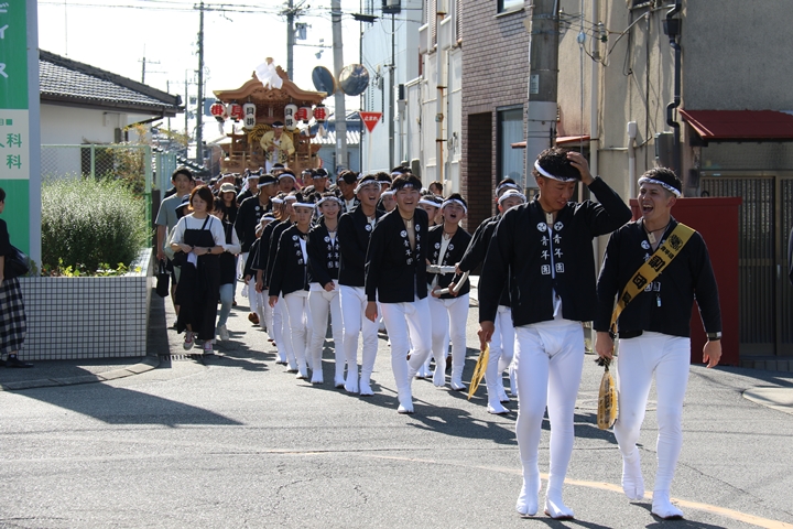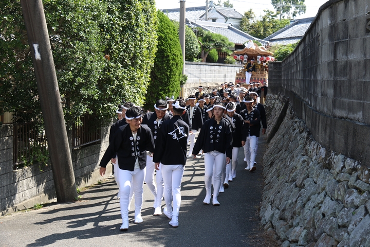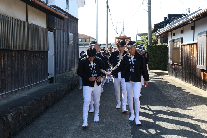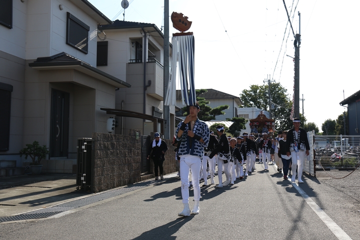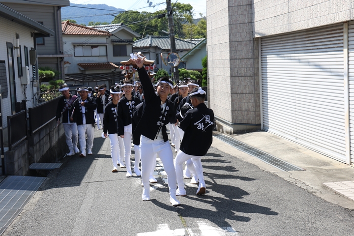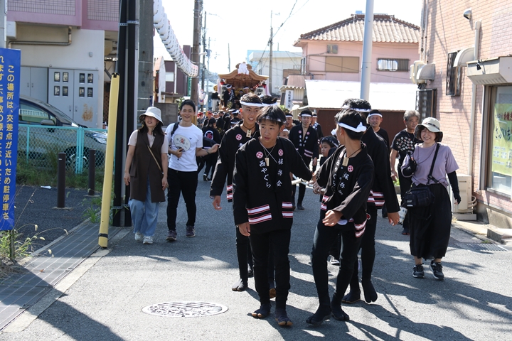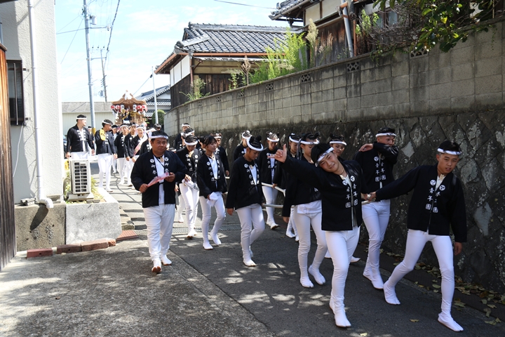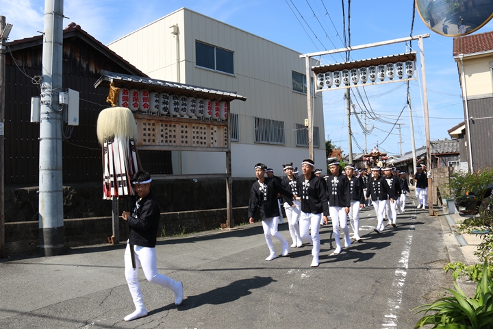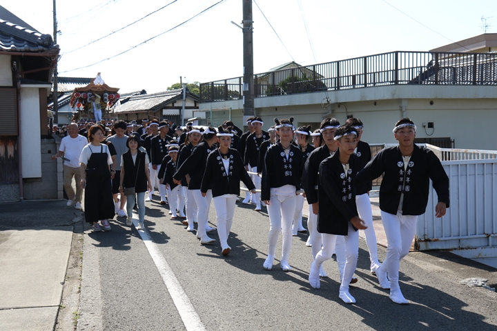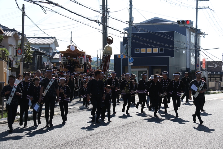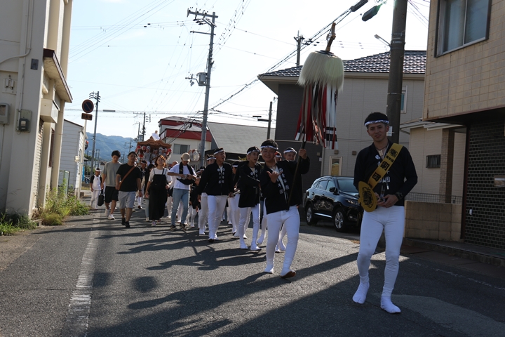 ![]() やぐら相撲を終え箱作西を先頭に出発します。 |