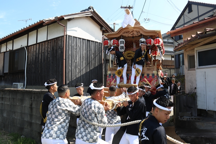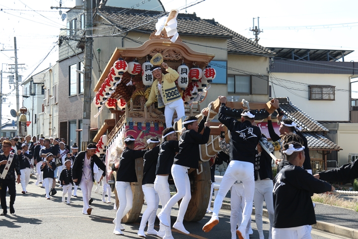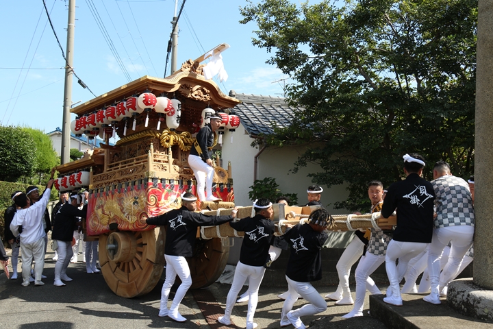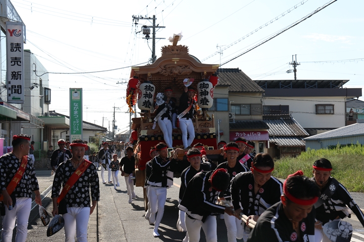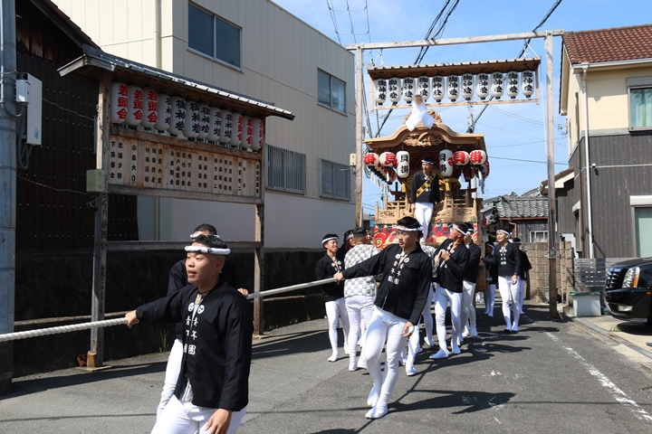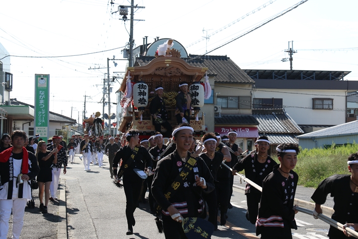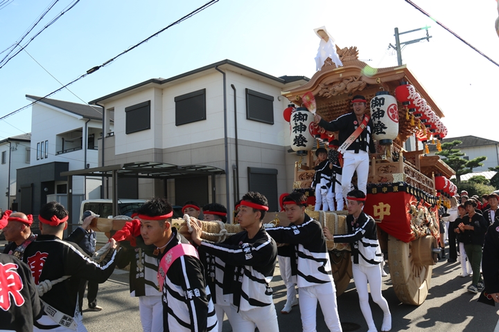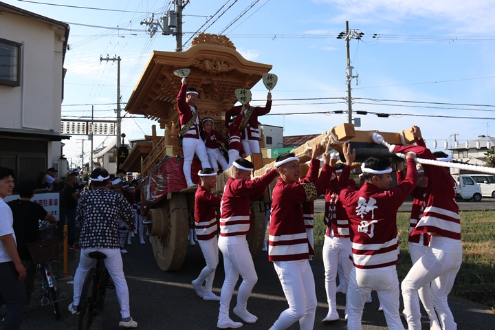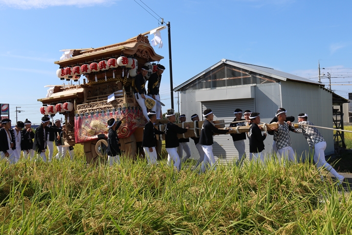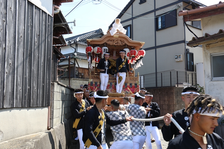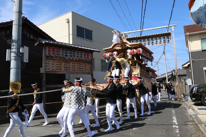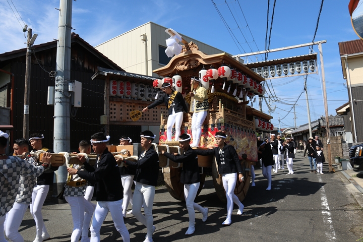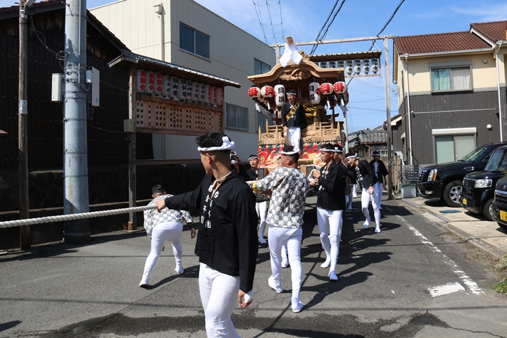 ![]() 11時30分、まずは村中をところ曳き。 |