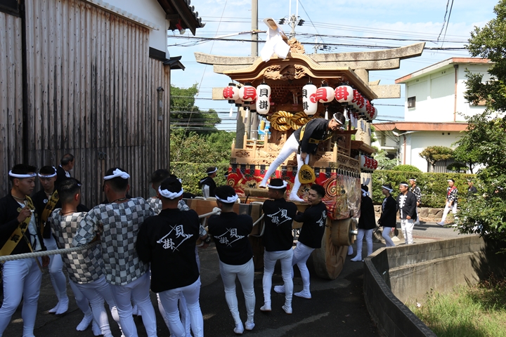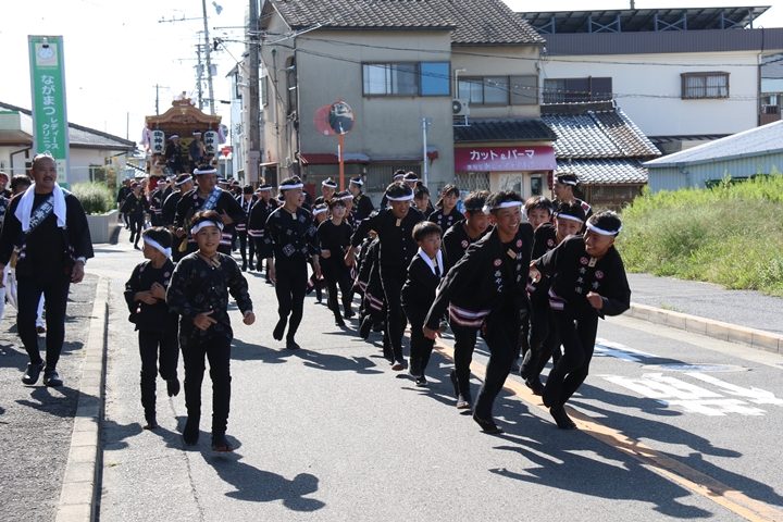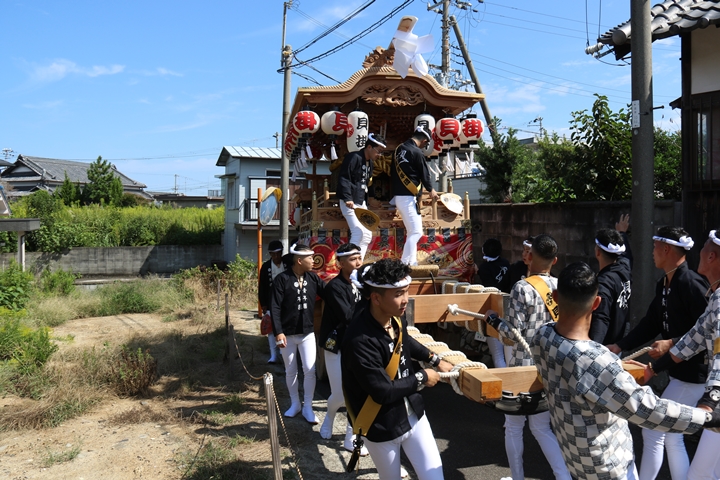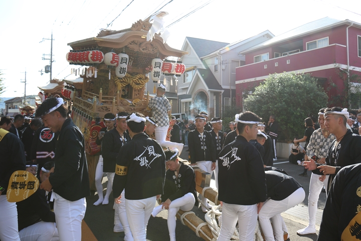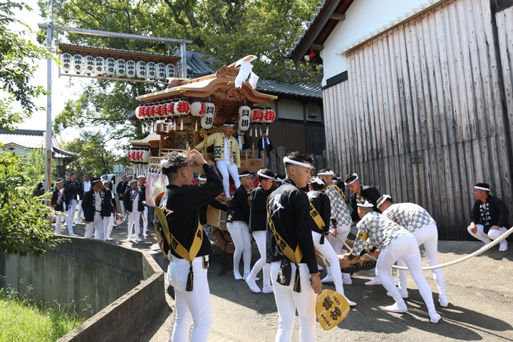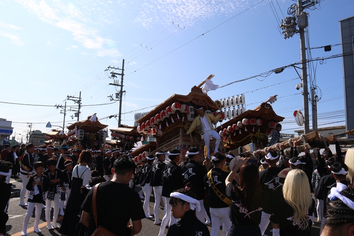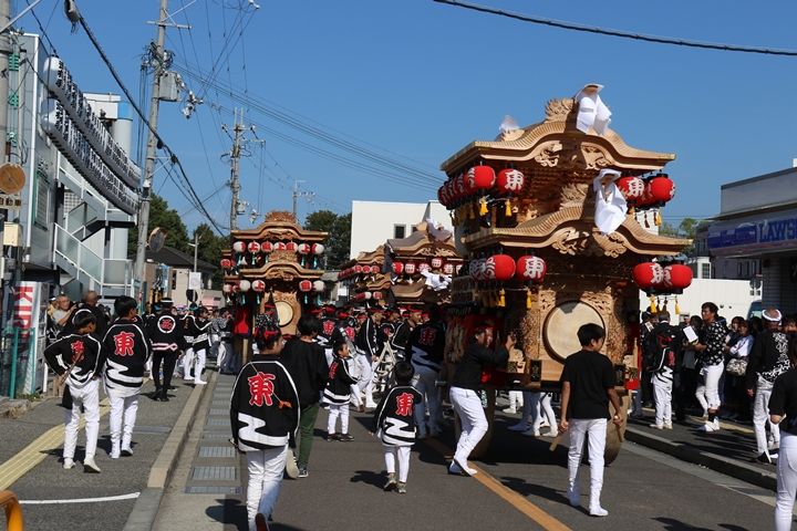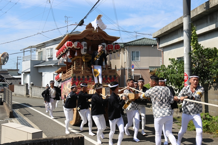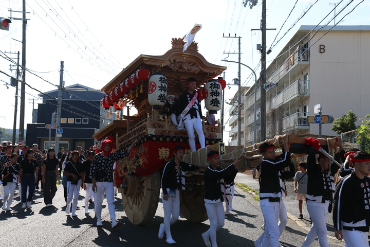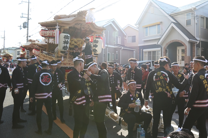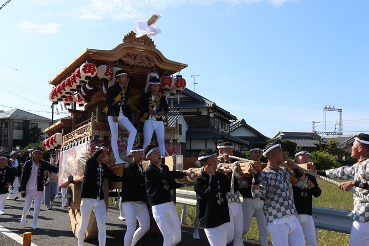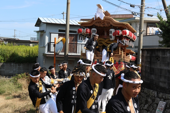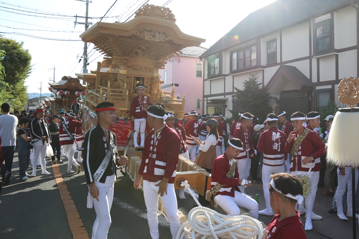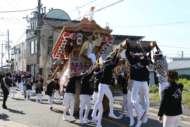 ![]() 11時30分、まずは村中をところ曳き。 |