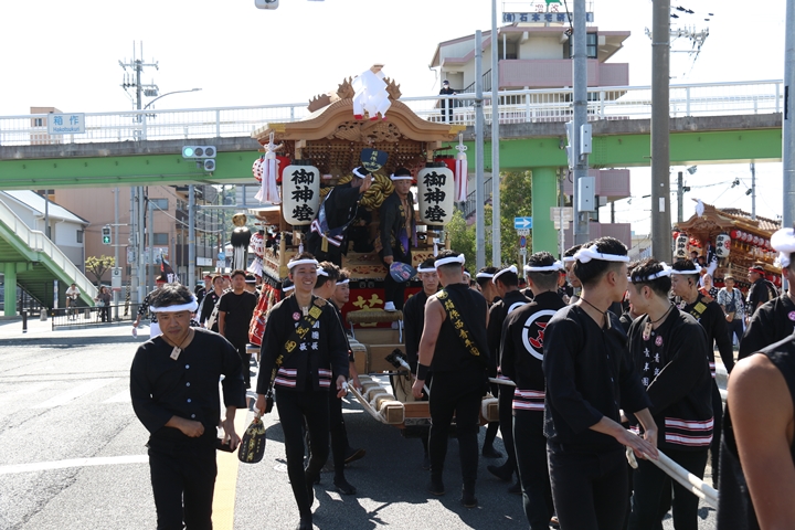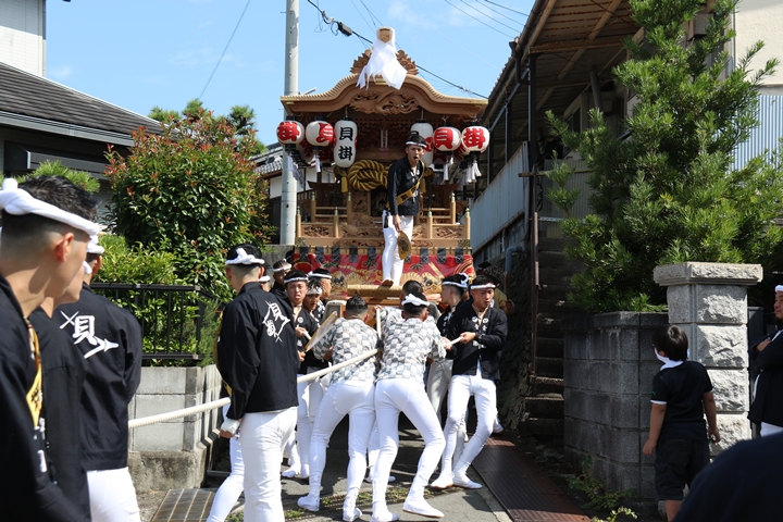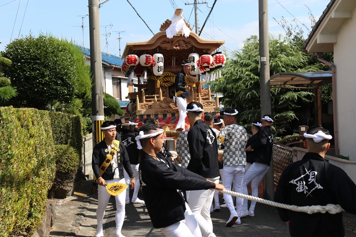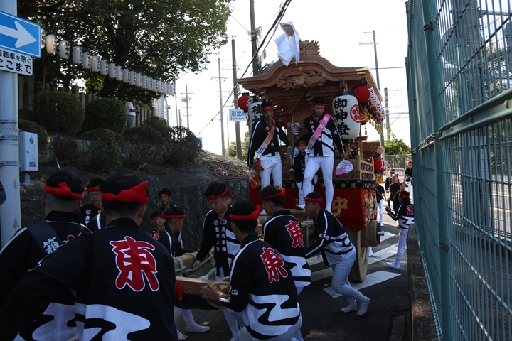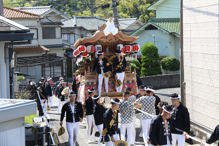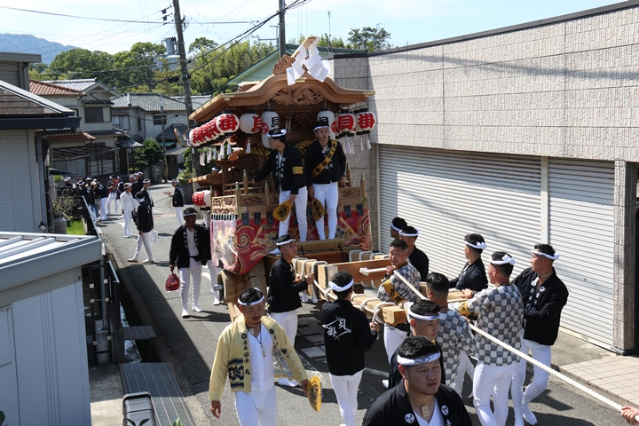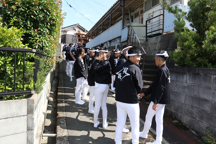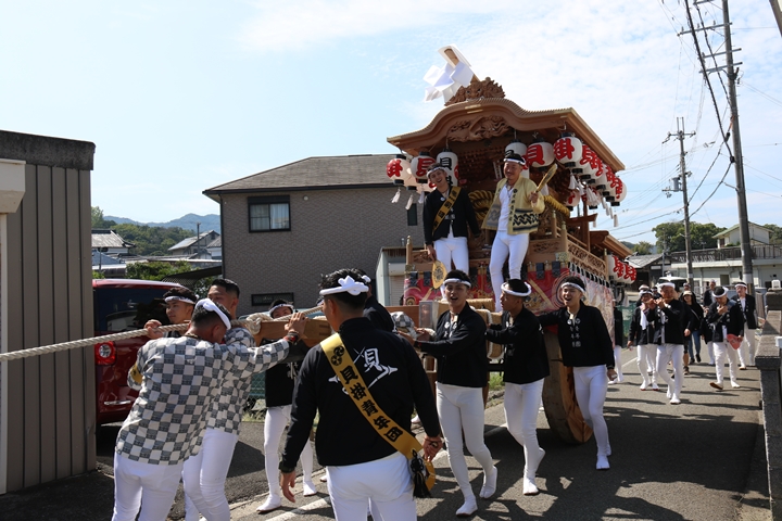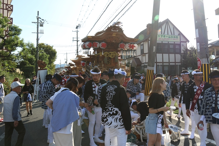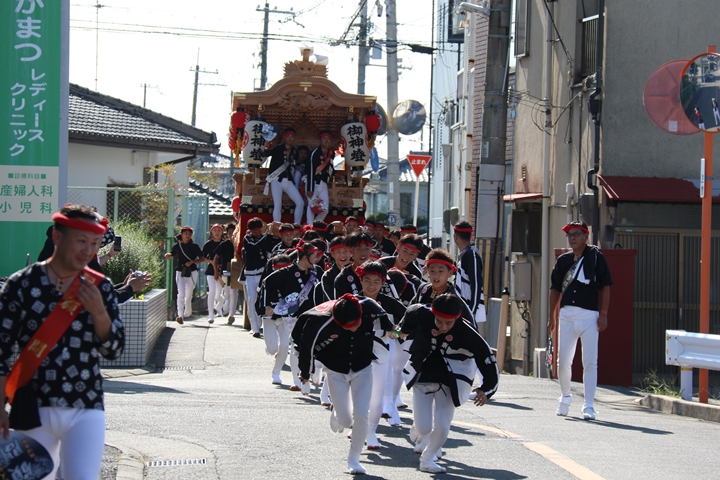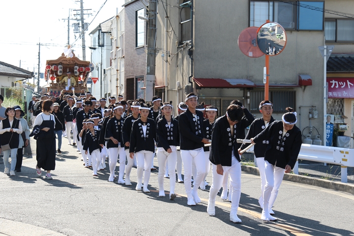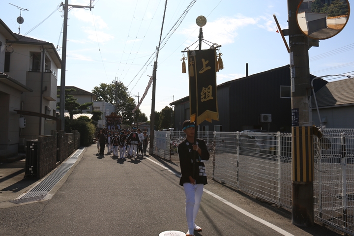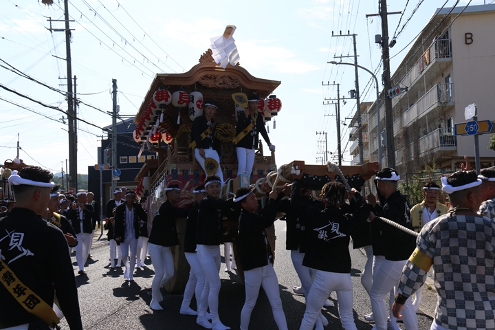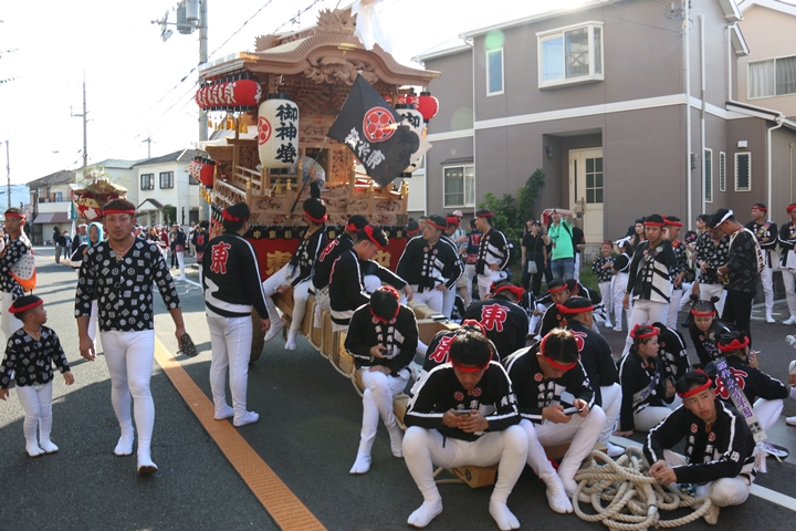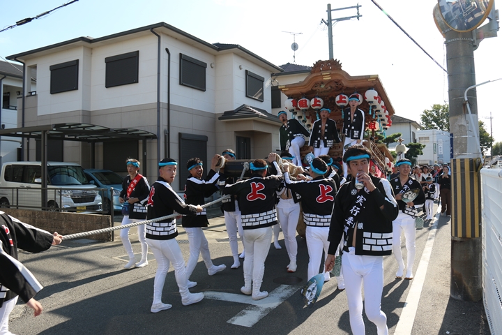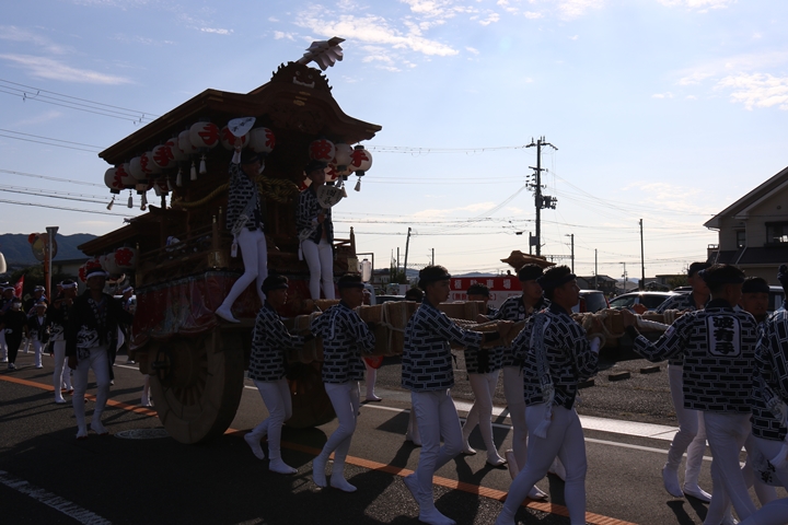 ![]() 府道752号線を曳行します。 |