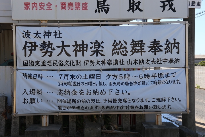 | 毎年7月最終土曜日に波太神社にて伊勢大神楽 総舞奉納が行われています。この日は滅茶苦茶暑かったですが今年も行ってきました。 |