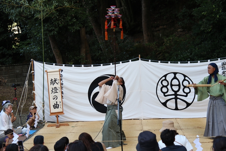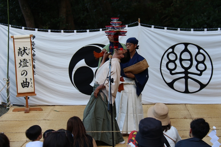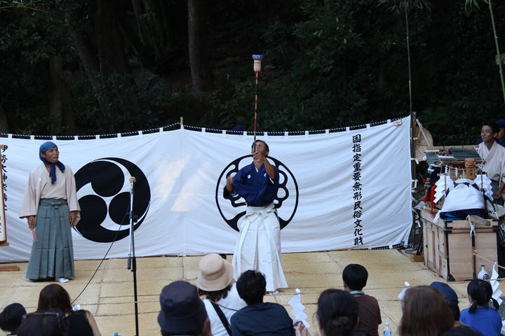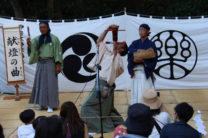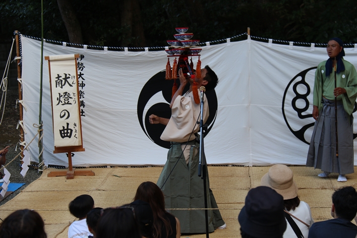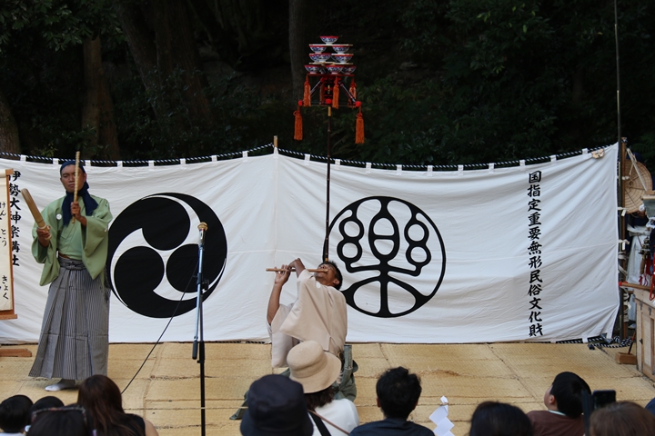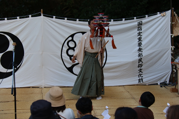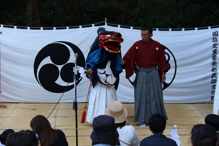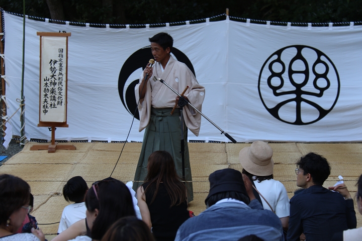 ![]() 国指定重要無形民俗文化財 伊勢大神楽講社 山本勘太夫社中の挨拶。 |