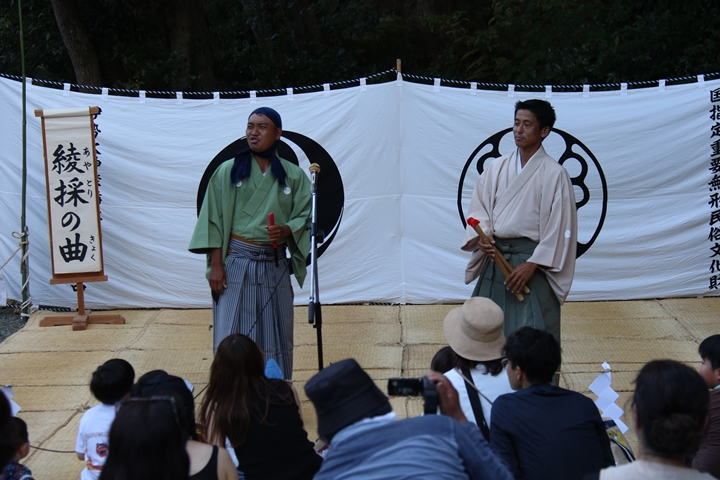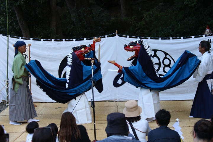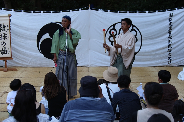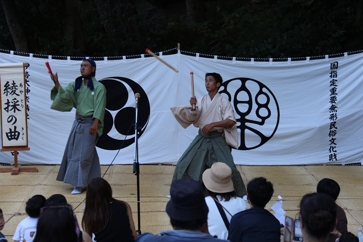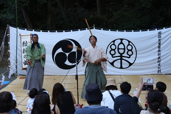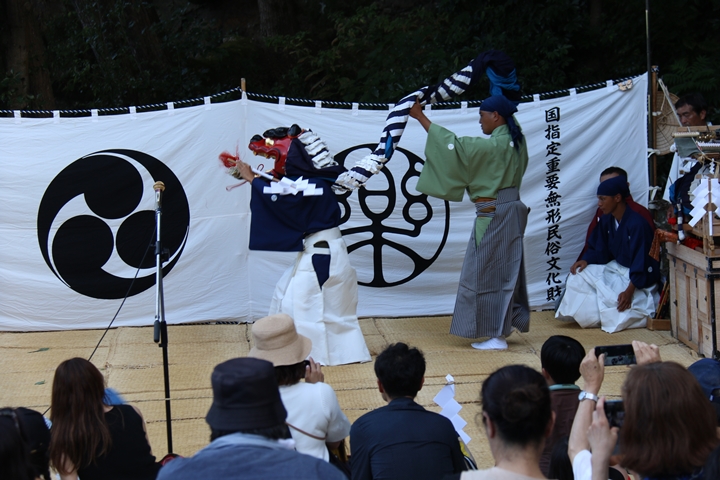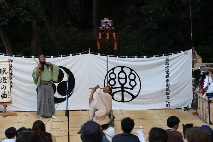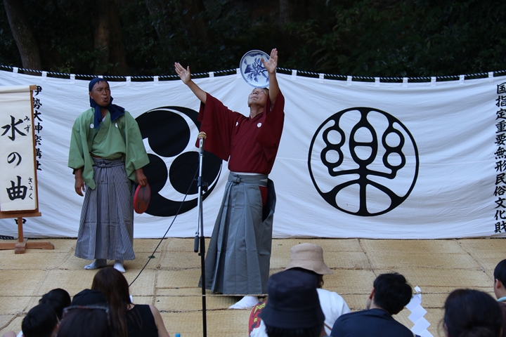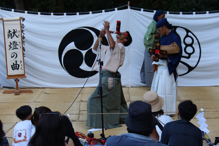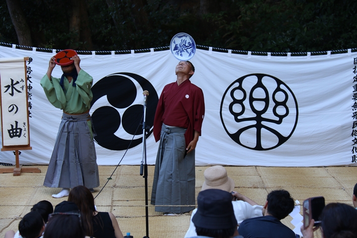 ![]() 国指定重要無形民俗文化財 伊勢大神楽講社 山本勘太夫社中の挨拶。 |