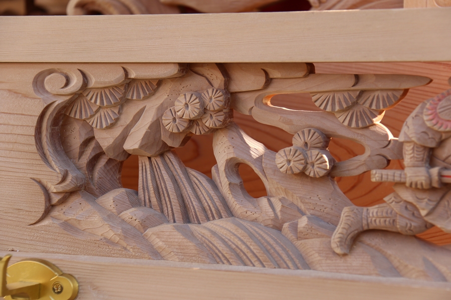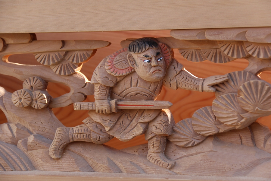 | 約15年9ヶ月前の平成22年5月3日より始めた「彫物画廊」、早いモンで今回が通算第650回目の公開となります。 \(^o^)/ 約15年で38台ものやぐらの彫物を御紹介させて頂きました。でもまだまだ撮影したいやぐらが多数…、でもその機会がないのが残念です。当ブログを御覧の関係者様方、是非ともその撮影の機会をお与え下さいませ。 さて650回目の今回は前回に引き続き黒田の彫物を御紹介します。今回は大屋根板勾欄左面を御紹介します。申し訳ありませんが彫物の題材は不明…、もしお解かりになられたら是非ともお教え下さいませ。 |