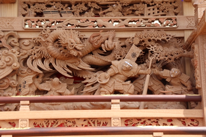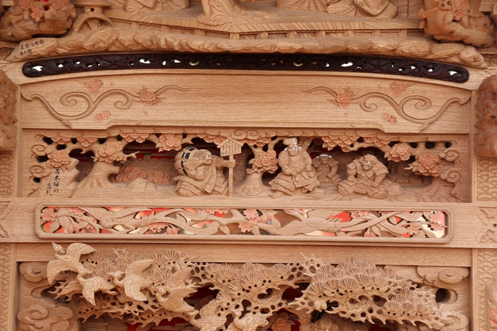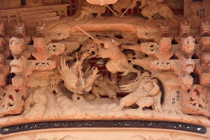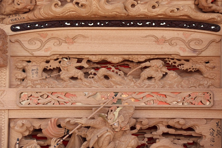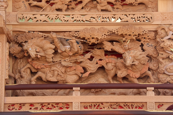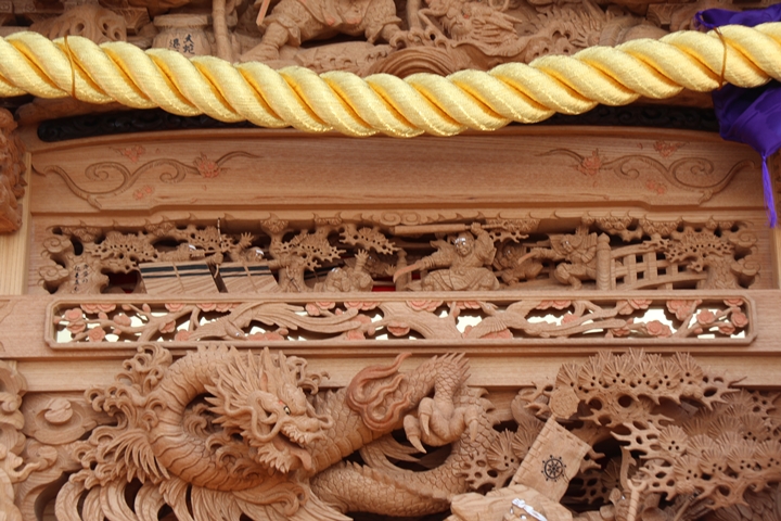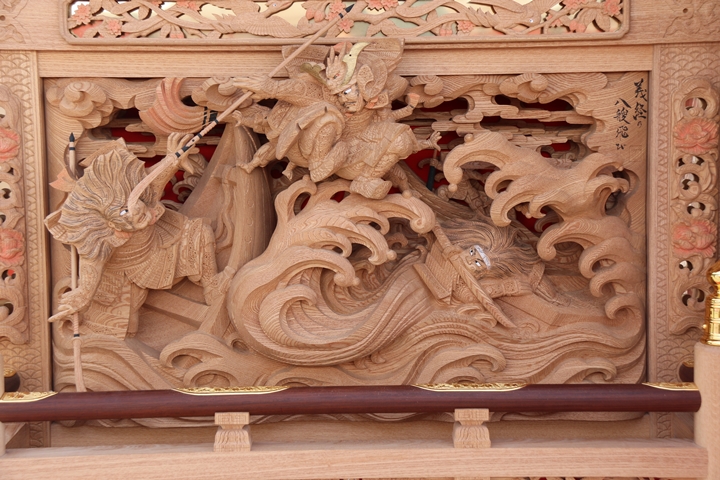 | 昨日、「地車ダイジェスト」と題して山中渓やぐら新調入魂式の模様を御紹介しましたがその中から主要な彫物を「彫物研究」と題して再編集してみました。彫師:木彫片山・木彫前田工房による素晴らしい彫物を堪能して頂ければ幸いです。 | |