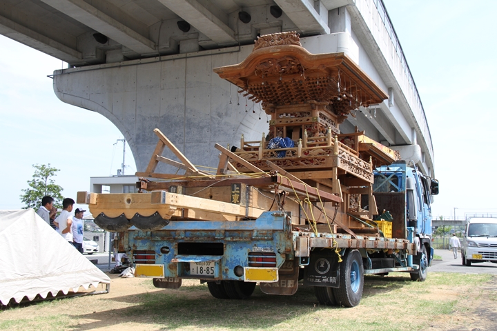 | 阪南市のやぐらの紹介文を【推敲】し改めて御紹介する「地車紹介」、今回は自然田上東組のやぐらを御紹介します。平成25年7月28日、1時30分に起床し半田さんと一緒に植山工務店へ、そして急いで戻ってきて新調入魂式を満喫、かなり無茶なスケジュールでした。体力的に今ではこんなスケジュールは組めません、11年前は若かった!!! |