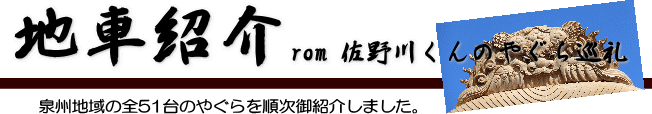 … ![]() 平成22年1月23日 − やぐら新調原木祭を実施。 ![]() 平成24年10月20日 − やぐら昇魂式前夜祭を実施。 ![]() 平成24年10月21日 − やぐら昇魂式を実施。 ![]() 平成25年7月21日 − 先代やぐらを搬出。 ![]() 平成25年7月28日 − やぐらを新調、入魂式を実施。 ![]() 平成25年8月3日・4日 − やぐら新調記念誌撮影会を実施。 ![]() 平成26年3月20日 − 泉州物語にて特集記事が掲載される。 ![]() 平成26年11月30日 − やぐら見学会を実施。 ![]() 平成26年11月下旬 − やぐら新調記念誌を発刊。 |