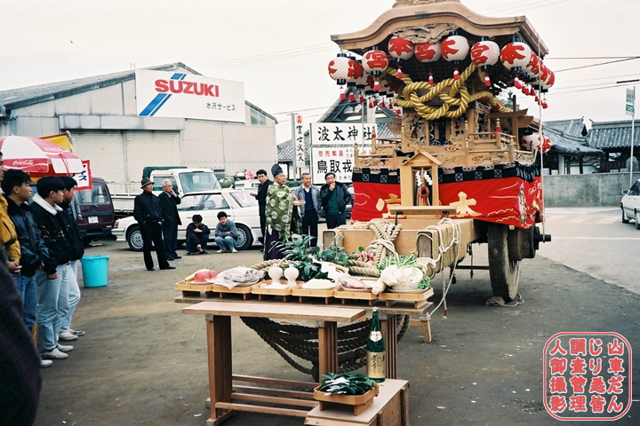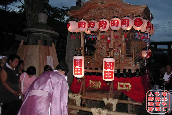 … ![]() 先々代やぐら。 ![]() 平成2年1月14日 − 先代・石田宮本(先代やぐら)の昇魂式を実施。 ![]() 先代やぐら。 ![]() 平成14年9月29日 − 昇魂式を実施。 ![]() 平成15年1月12日 − 岬連中へ譲渡。 ![]() 平成16年9月19日 − やぐらを新調、入魂式を実施。 ![]() 平成17年4月3日 − 鬼板を新調、入魂式を実施。 ![]() 平成17年4月 − やぐら新調記念誌を発刊。 ![]() 平成28年9月4日 − 駒を新調、御祓いを実施。 |