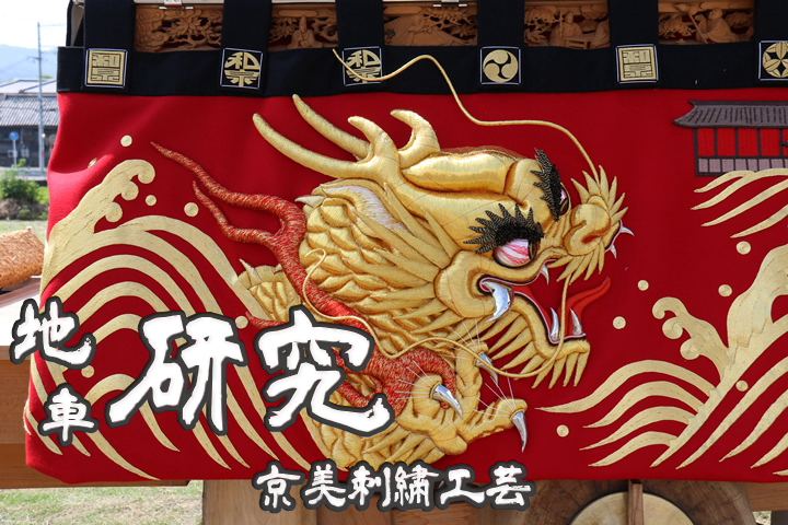 | やぐらに携わる工匠を御紹介する企画「地車研究 PROFESSIONALIST SERIES」、今回は京美刺繍工芸を御紹介しようと思います。京美刺繍工芸と言えば平成28年に自然田東組、令和2年に榮組、そして今年、和泉鳥取のやぐらの本幕を新調しました。 |