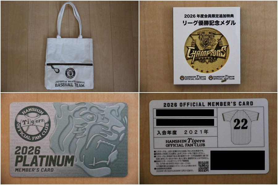 … ![]() ▲ 会員証とBIGスクエアトートバッグ、そしてリーグ優勝記念メダルが付いてました。 |