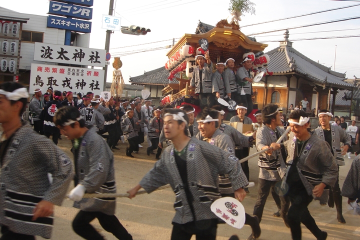 2025/3/29 - 20年前・平成17年波太神社宮入り![]() ![]() ![]() ![]() 20年前の平成17年波太神社宮入りを振り返ります。西鳥取地区のやぐらが宮上がりし五町イベント、宮一番で人手が少なかったのか?運よく五台並んだ様子を撮影できた様です。そして馬場先には尾崎地区のやぐらが休憩中でした。 |