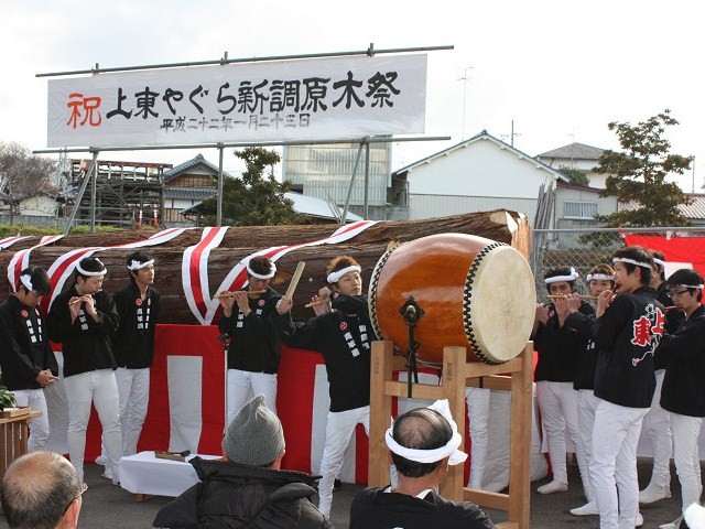 ・ 自 然 田 上 東 組 や ぐ ら 新 調 原 木 祭 ・