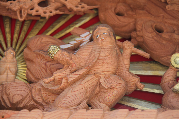 彫物題材:天の岩戸 / 大屋根桝合左面