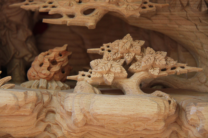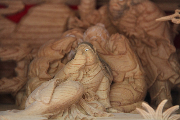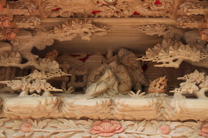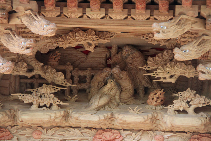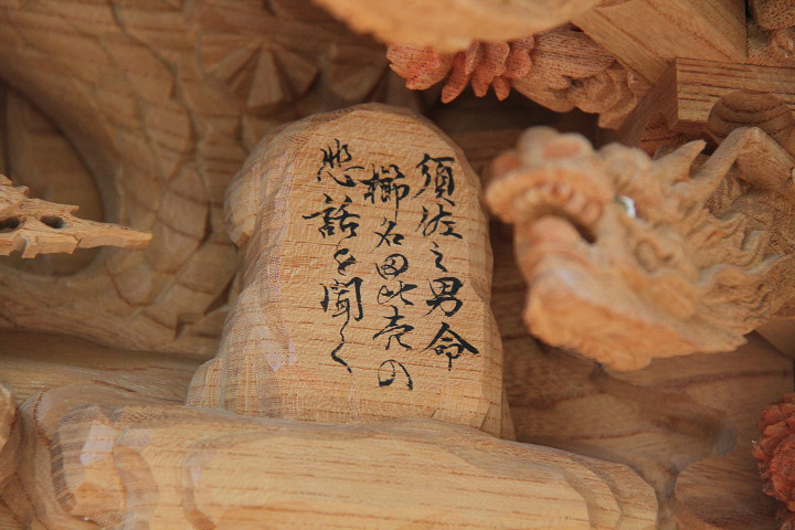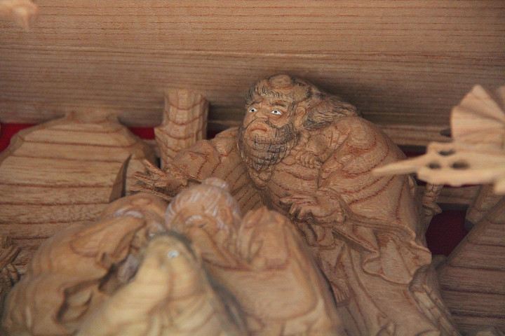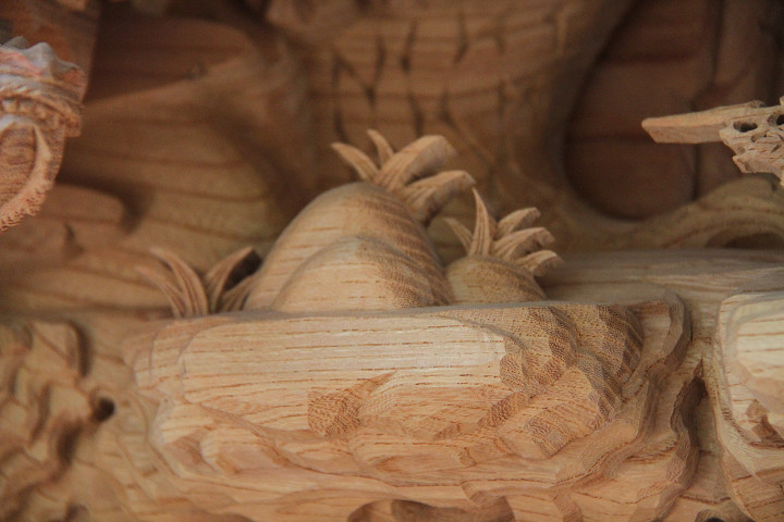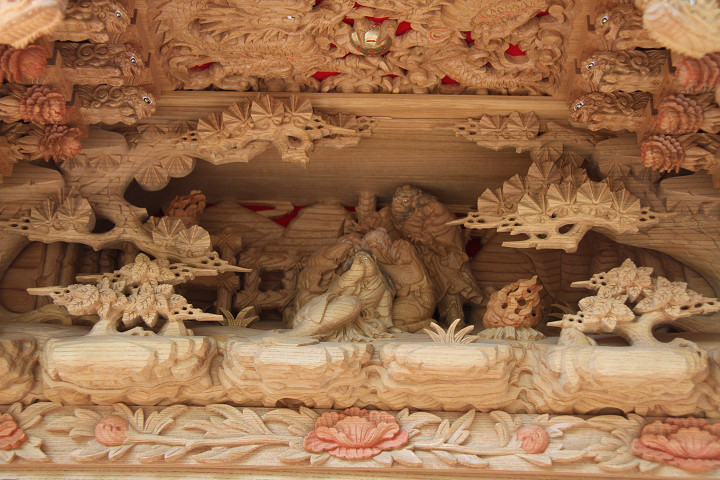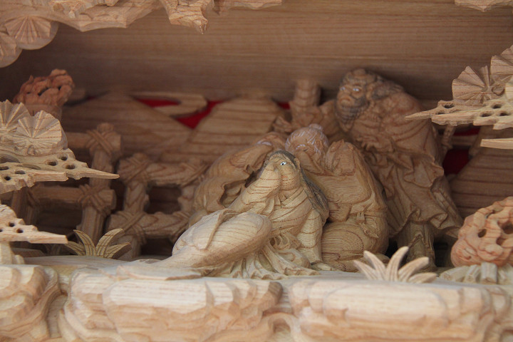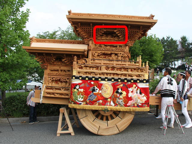 彫物題材:須佐之男命 櫛名田比売に悲話を聞く / 大屋根桝合左面