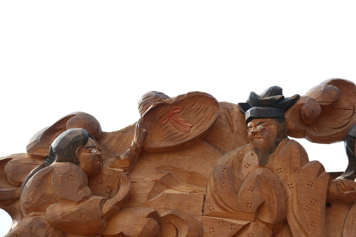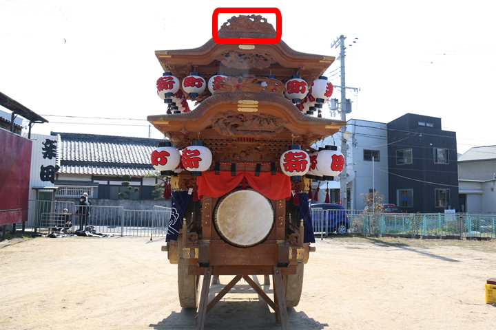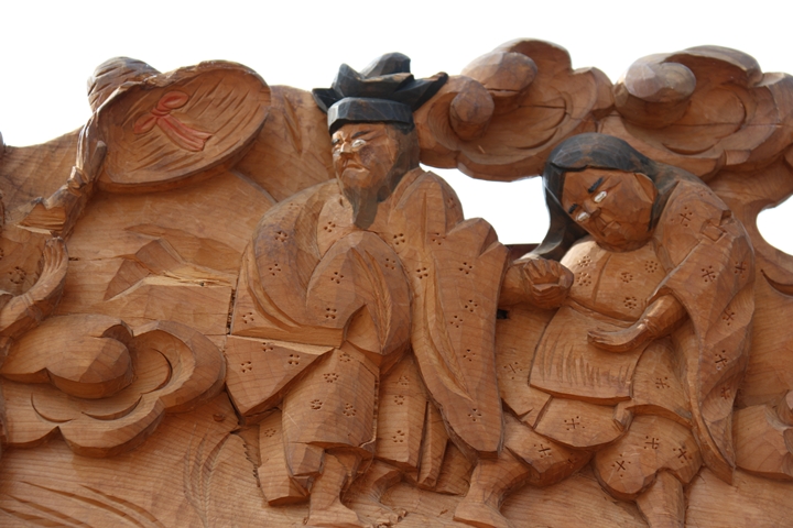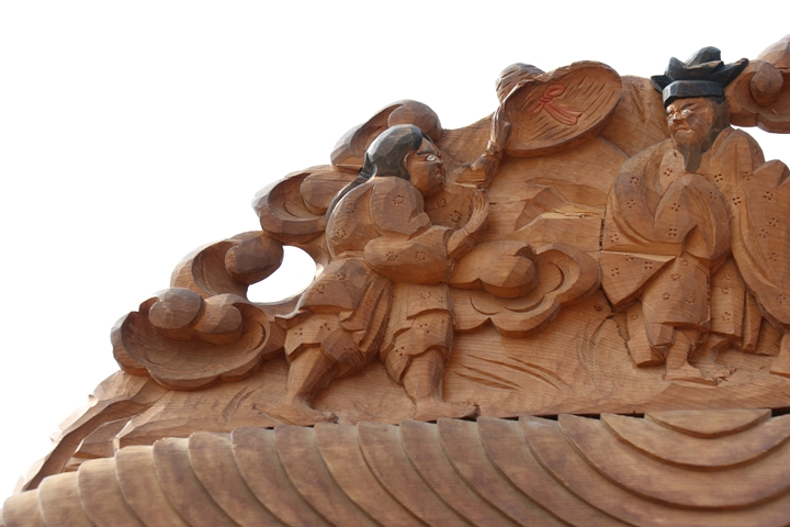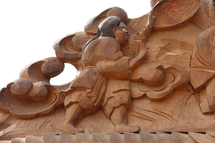 彫物題材:後醍醐帝 笠置にて童子の夢を見る / 大屋根飾目後面