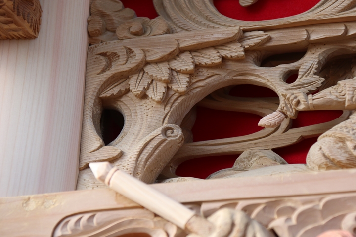 彫物題材:智多星呉用 / 大屋根欄間右面