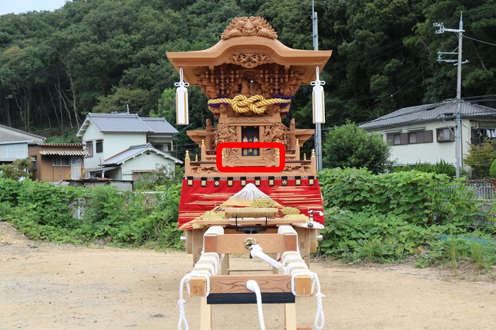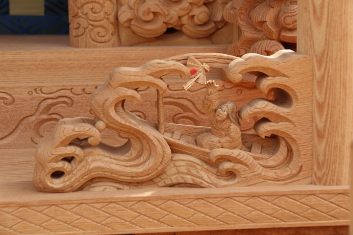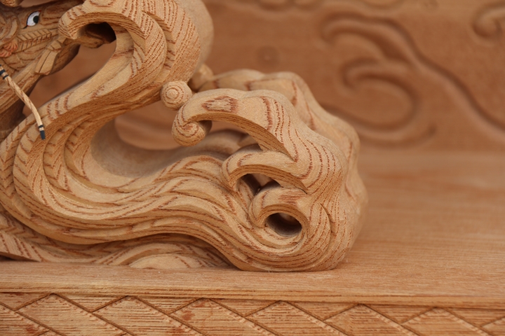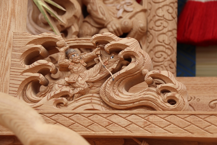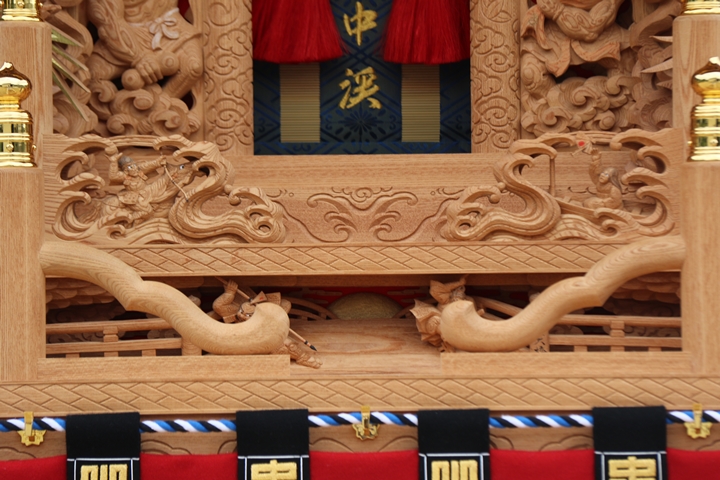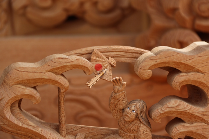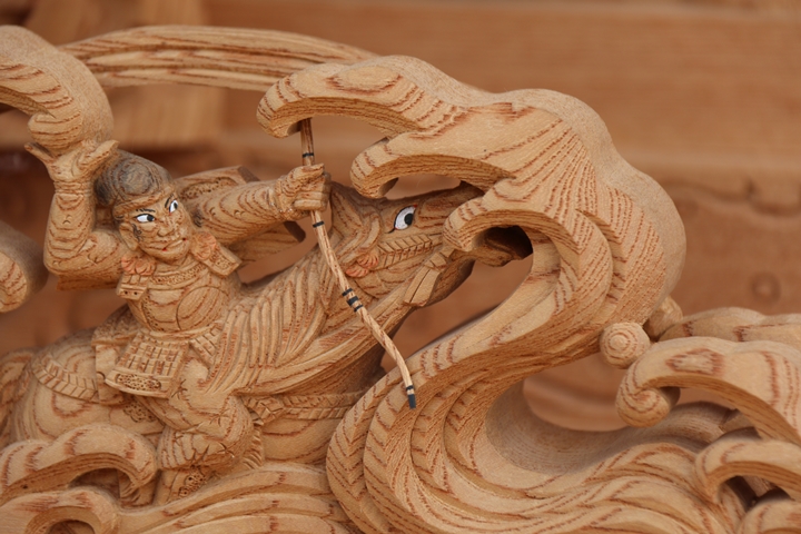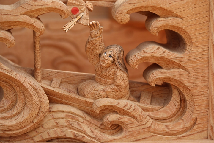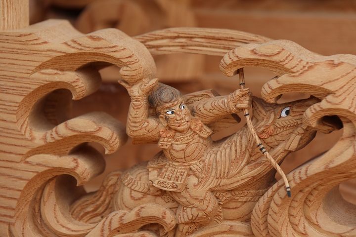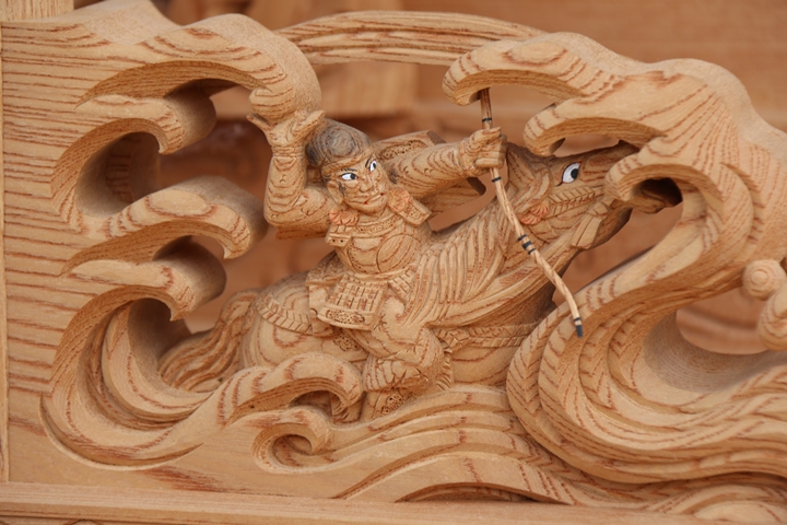 彫物題材:那須与一 / 大屋根犬勾欄正面