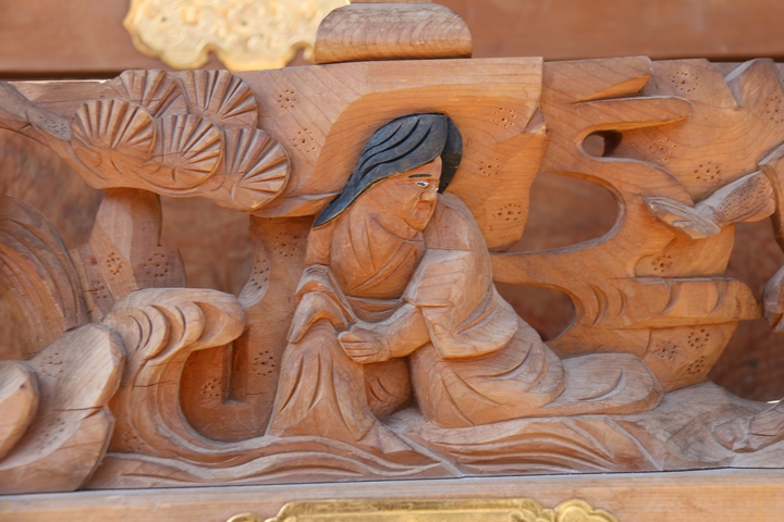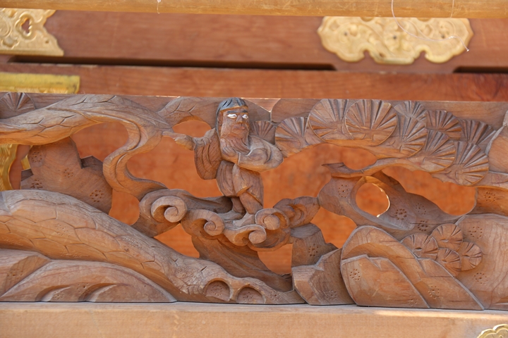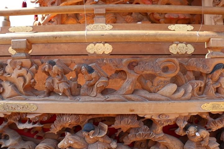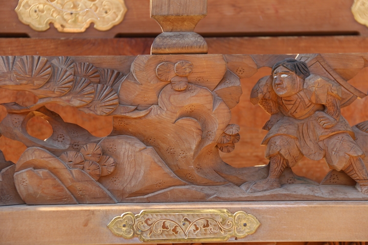 彫物題材:頼光の木渡り / 大屋根板勾欄右面
