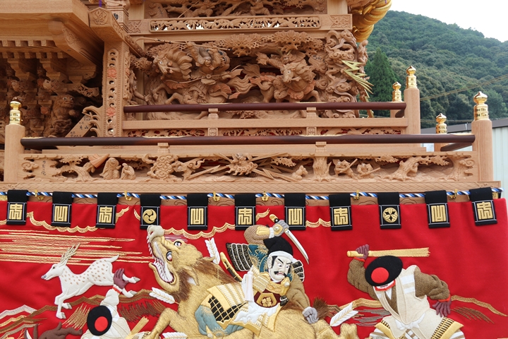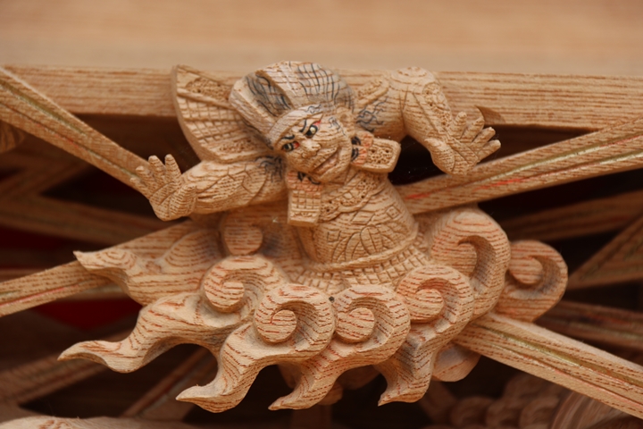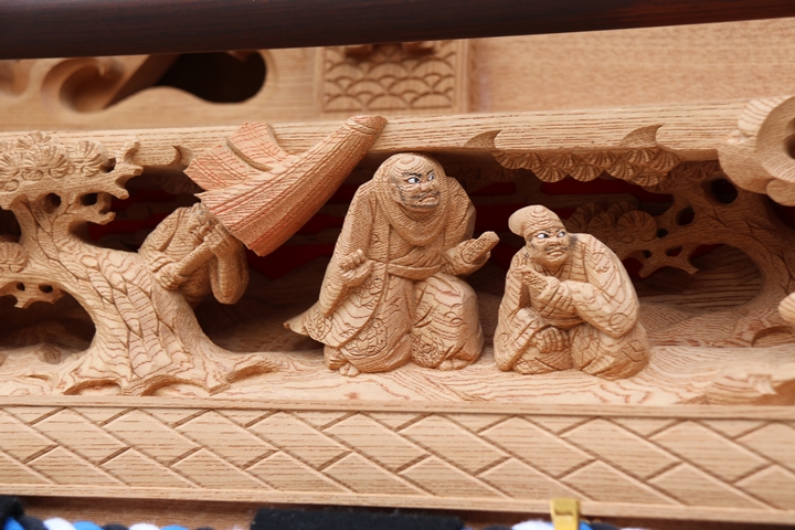 彫物題材:布引の滝 / 大屋根板勾欄左面