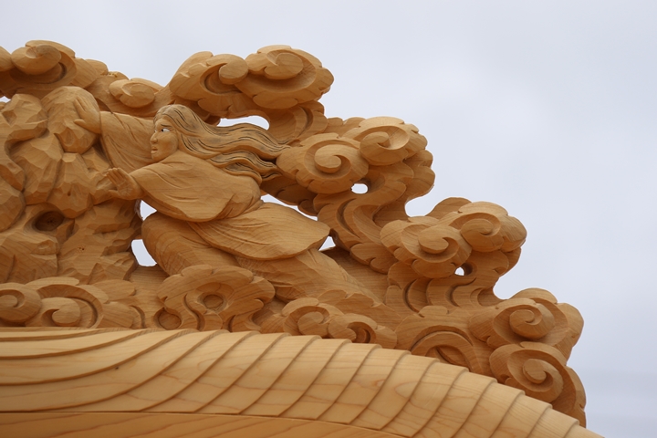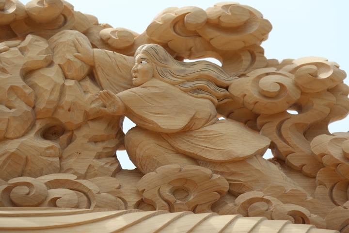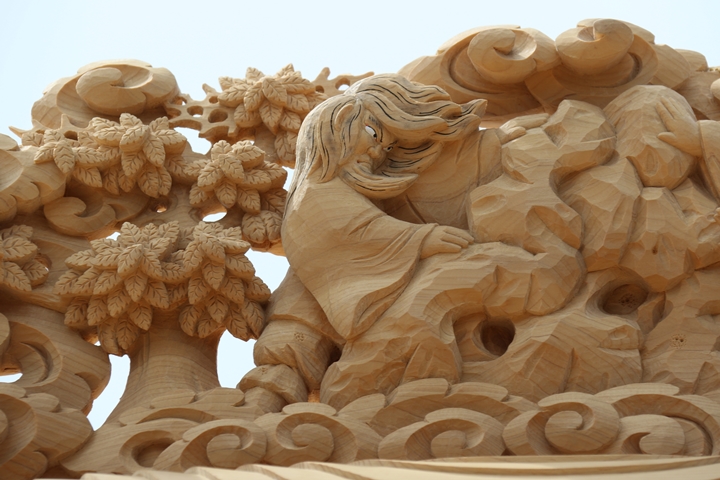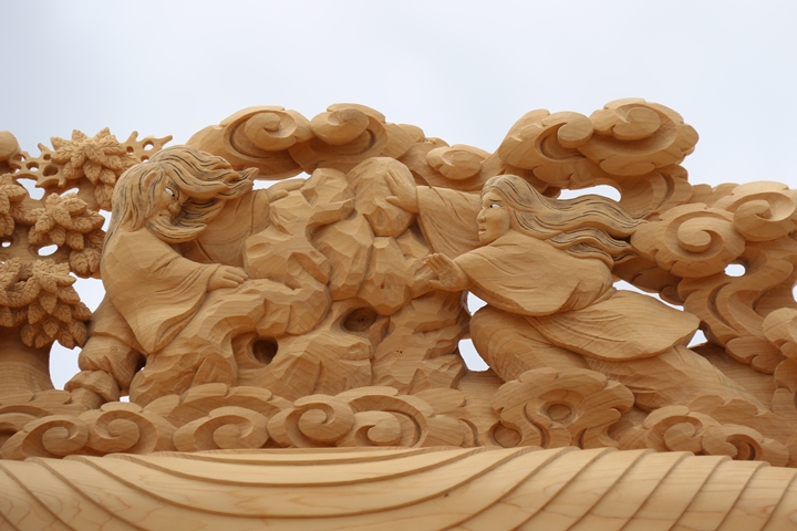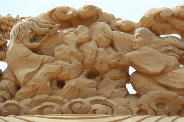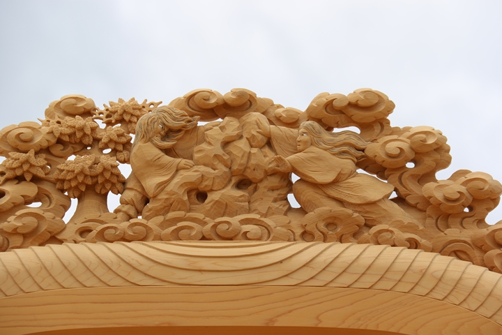 彫物題材:伊弉諾尊伊弉冉尊黄泉の国 / 大屋根飾目後面