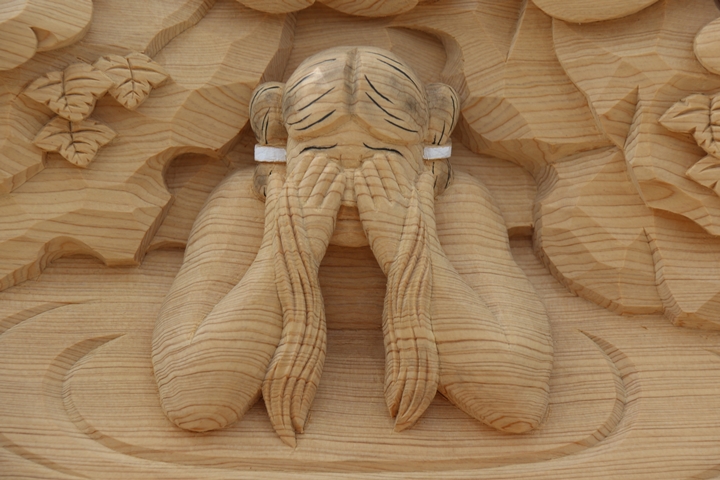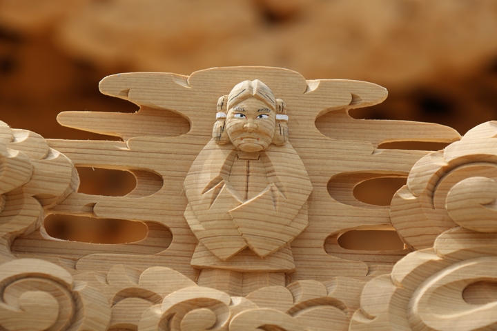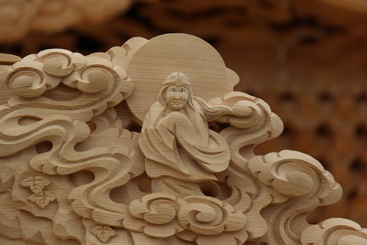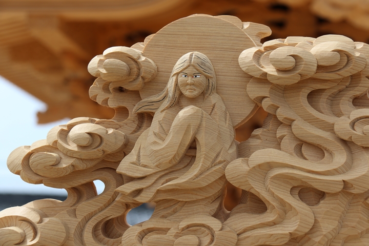 彫物題材:伊弉諾尊禊 / 小屋根飾目正面