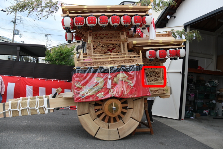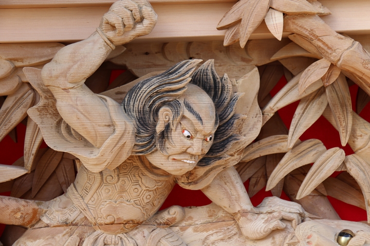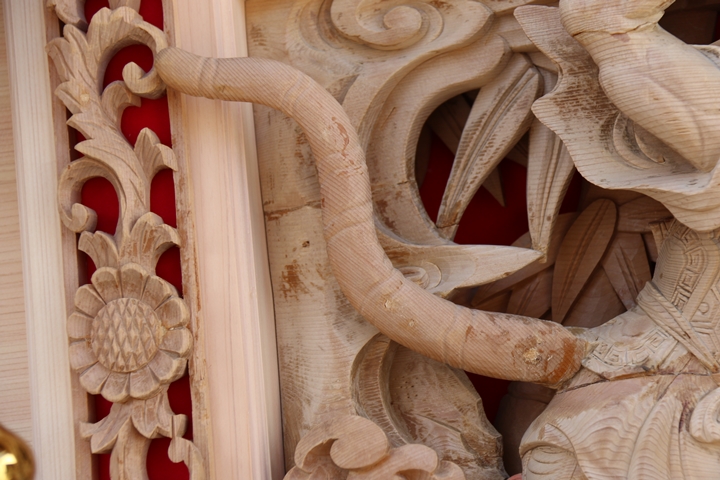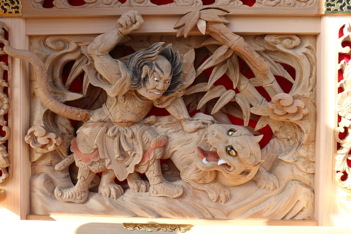 彫物題材:武松行者 景陽岡に虎を殺す / 小屋根幕板左面