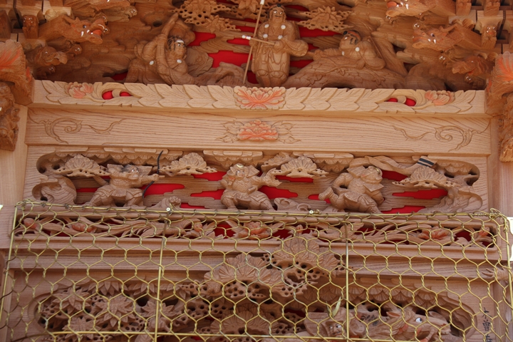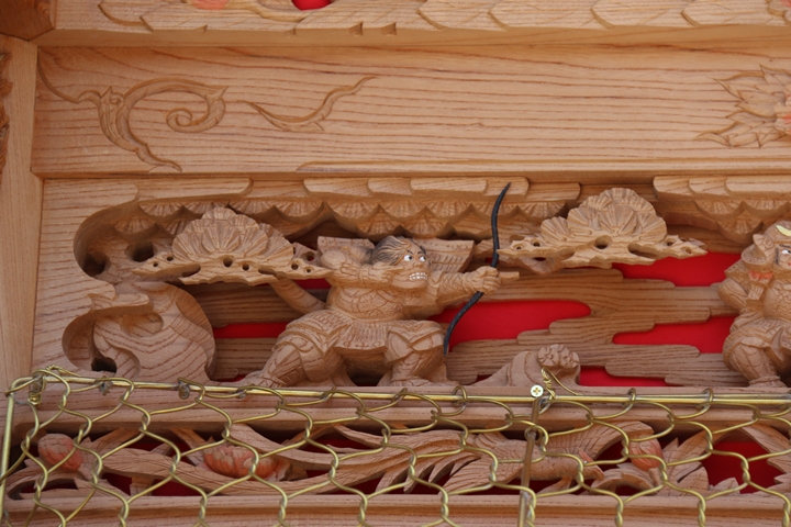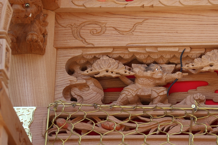 彫物題材:平景清 綴引き / 大屋根欄間左面