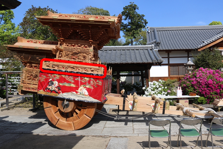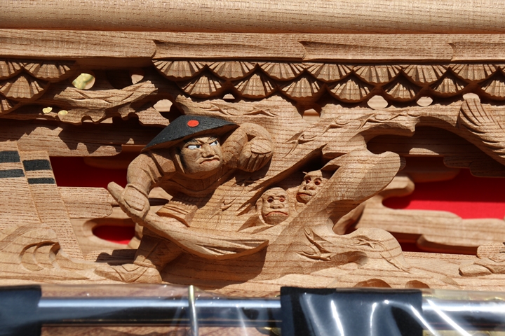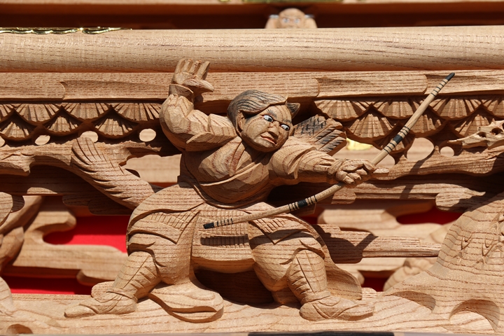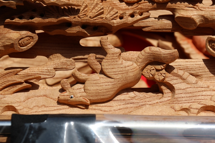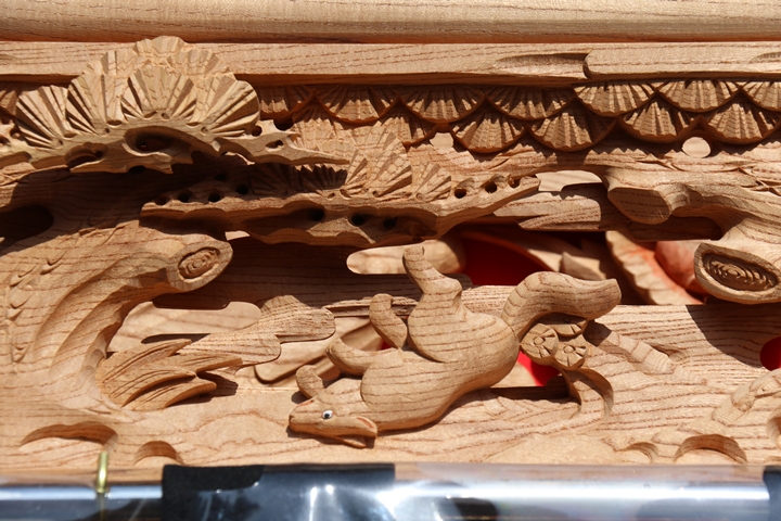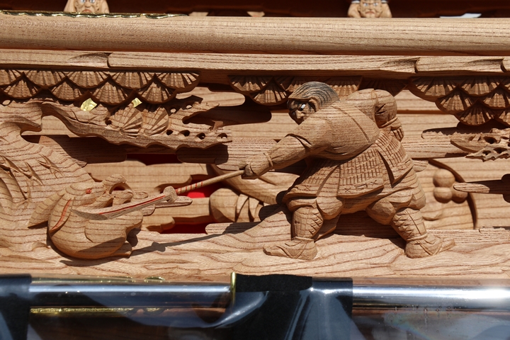 彫物題材:狩場風景 / 大屋根板勾欄左面