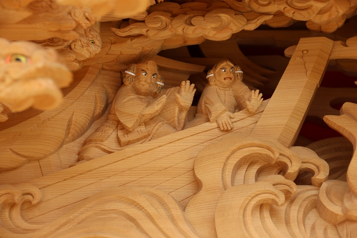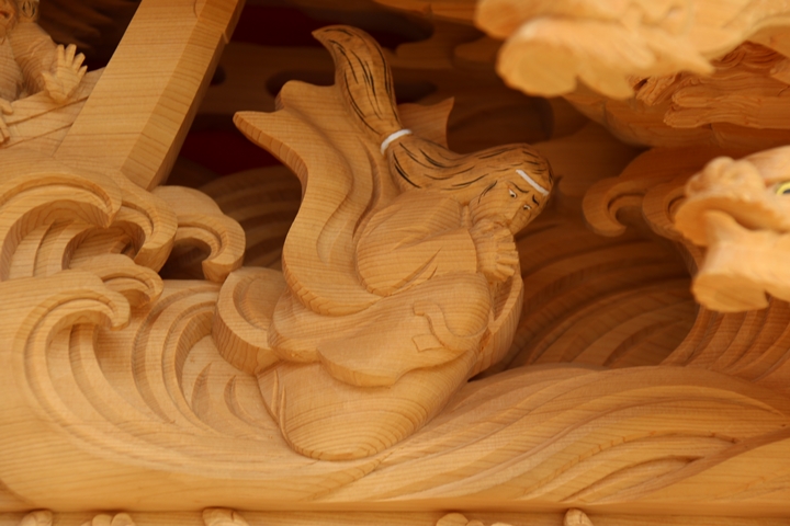 彫物題材:弟橘姫荒波を鎮める為入水 / 小屋根桝合左面