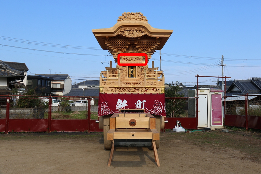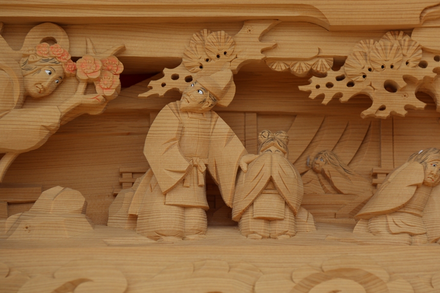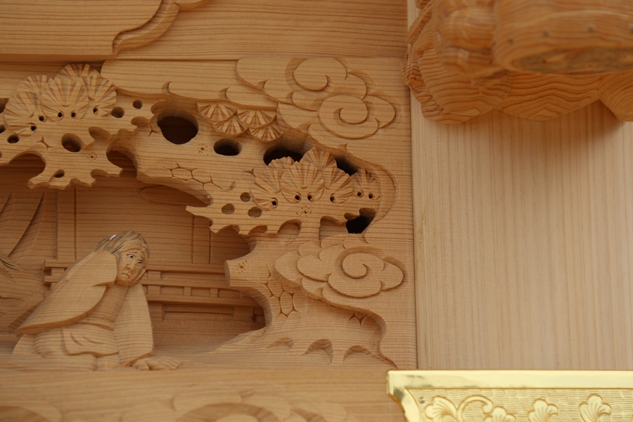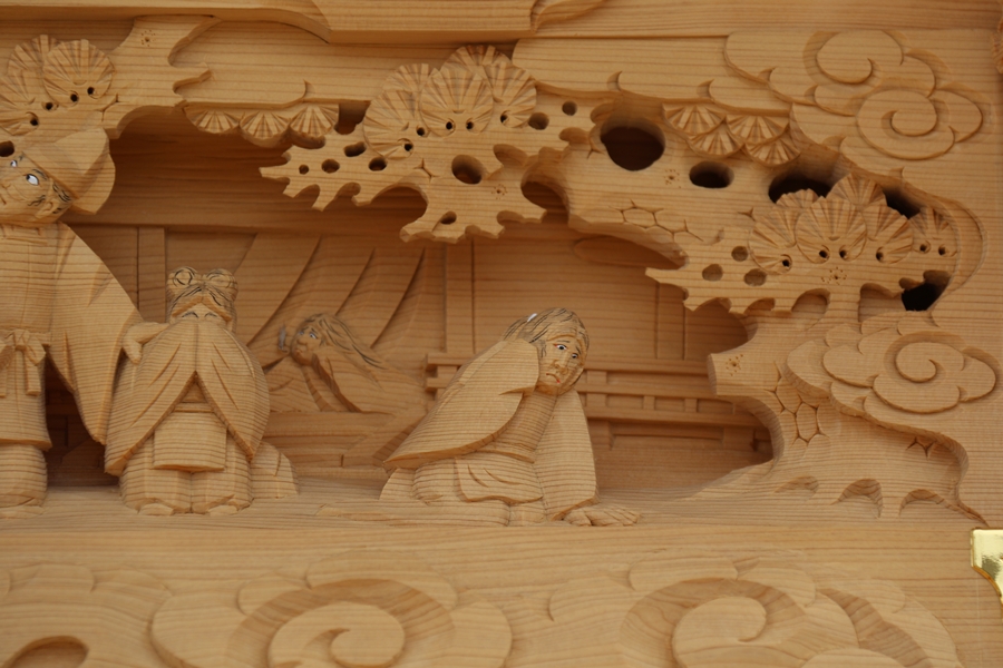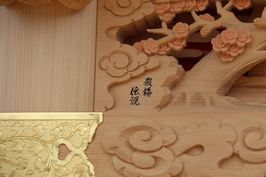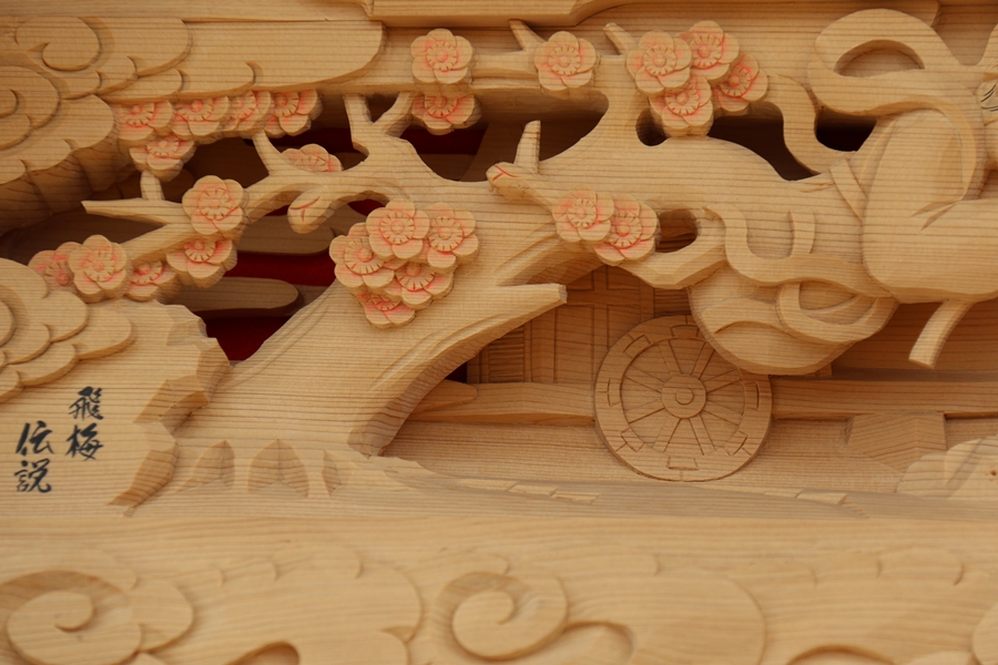 彫物題材:飛梅伝説 / 大屋根欄間正面