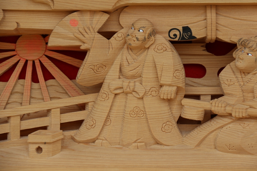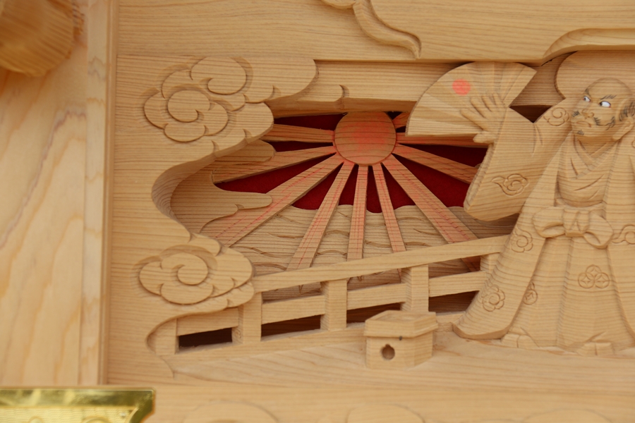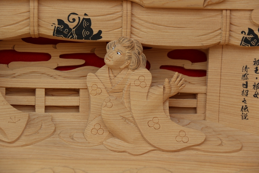 彫物題材:祇王・祇女清盛日招き伝説 / 小屋根欄間右面