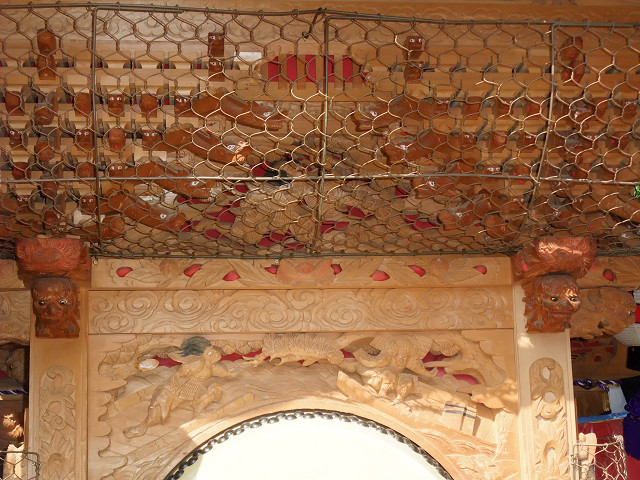 桜井の駅、 左:加藤清正 虎退治 【太平記】 ・長押 − 波濤 ・柱巻 − 右:降り龍、 左:昇り龍 ・太鼓廻り − 源義経