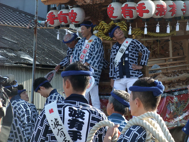 | 昨日は自町若頭会前夜祭へ行ってて、1時30分に就寝。でも今日は6時起床、7時出発と言う段取りで波有手組やぐら御祓いへ行ってきました。実は波有手組、組み物等を修復し、その御祓いをするとの情報を得てたのです。昨日の前夜祭の精で、重度の二日酔いにも関わらず、自転車で行ってきました。 |