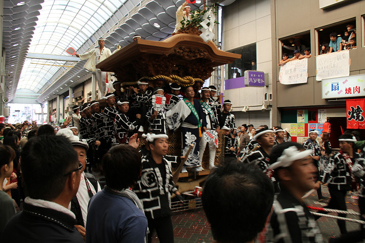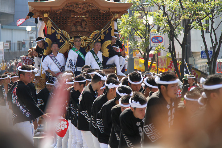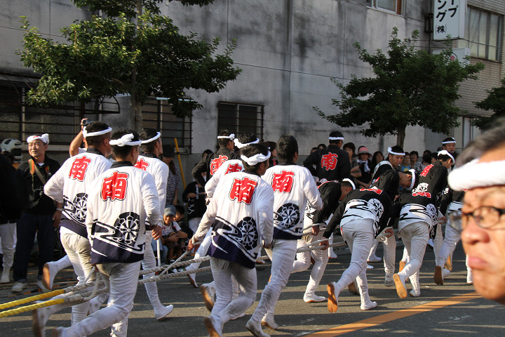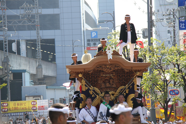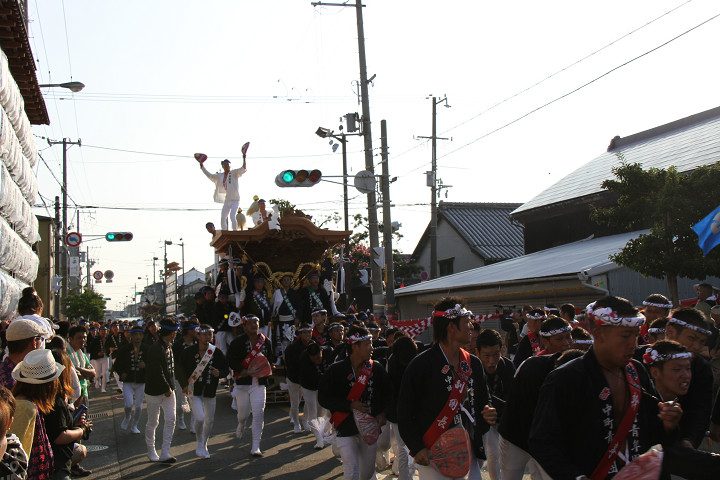 ![]() 岸和田駅前方面から藤井町のだんじりがやって来ました。 |