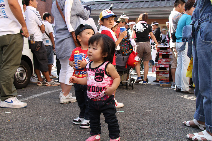 ![]() 休憩時間は子供たちが一番だんじりへ近づける時間です。 |
