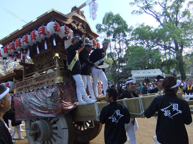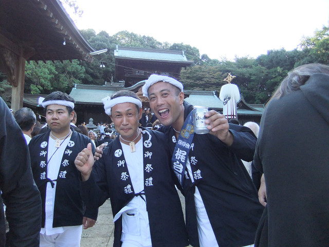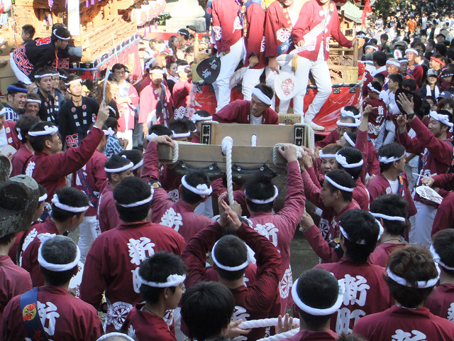 ![]() 若頭会が梶台を持ちます。 管理人も根元を持ってます。 (^^ゞ |