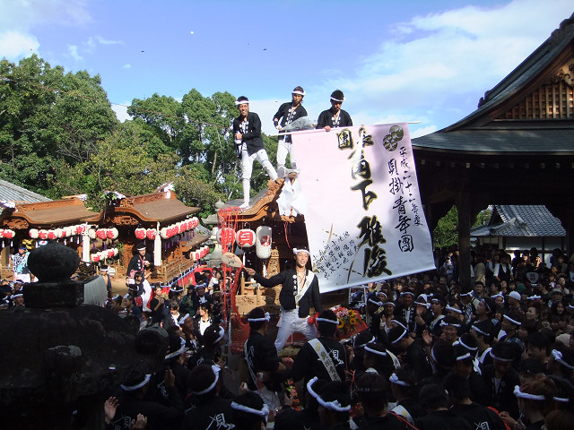 ![]() 22時、無事納庫。 僕も23時前に退散し、24時に床に着きました。 昨日の豪雨から一転、今日は絶好の秋晴れの中、エエ宮入りができたと思います。 管理人も階段チェックや宮上がりの合図係りと、色々役目がありましたが、 とりあえず無事終えて良かったと思います。 また今日はビールやN君差し入れの「浪花正宗」をたらふく御馳走になりました。 でも管理人の仕事も忘れず、今日は写真を565枚撮影しました。 ともあれ明日もエエ祭りをしようと思います。 |