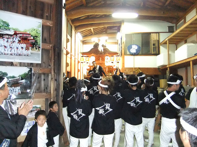 ![]() 再び青年團に託します。 まずは貝掛のやぐらです。 |
