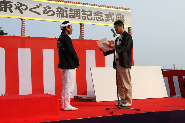 ![]() 7時15分、植山工務店から新調委員会への引渡し式が始まりました。 |