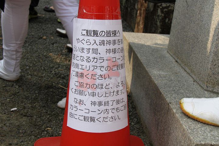 ![]() 拝殿とやぐらの間にはこの様なカラーコーンが…。 |
