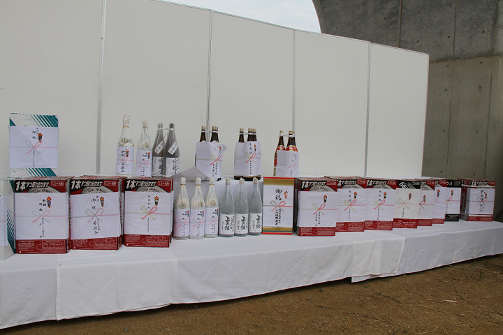 ![]() たくさん飾られた御祝いの酒。 |