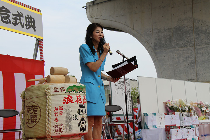 ![]() 来賓の方々が壇上へ上がりました。 |