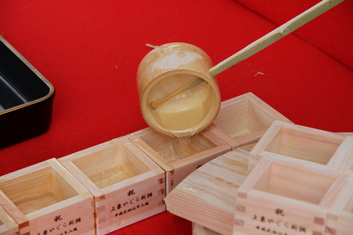 ![]() 手際よく桝へ酒が注がれます。 |