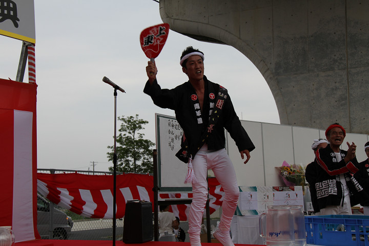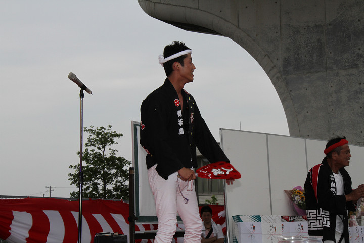 ![]() 盛り上がったところで團長の音頭。 |