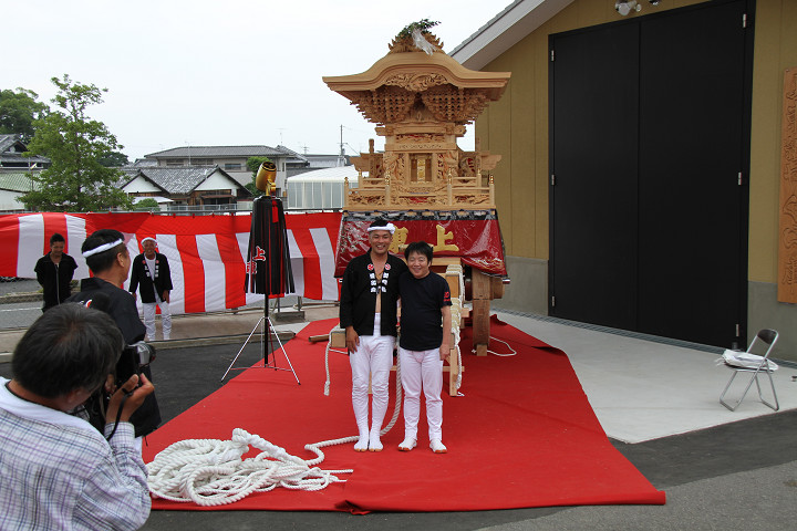 ![]() ウマをかまし、納庫完了。 最後に、平成22年1月23日土曜日の原木祭から始まり、 昇魂式、そして今日の新調入魂式とアッと言う間の3年間でした。 だんじり工務店老舗の植山工務店の初やぐらと言う事で非常に注目されましたが、 やはり立派なやぐらが完成したかと思います。 管理人の正直な感想は「3Dなやぐら」、立体的な幕板、飛び出る雰囲気の脇障子と 非常に立体感ある三次元的な彫物のやぐらに思えました。 そして今日はわがまま言って芝出公認の「撮影班」の腕章を作成して頂き、 本当に助かりました。 ともあれ本当におめでとうございました。 そして色々情報提供して頂いたH.K.さん、改めてありがとうございました。 \(^o^)/\(^o^)/\(^o^)/\(^o^)/\(^o^)/\(^o^)/\(^o^)/\(^o^)/ |