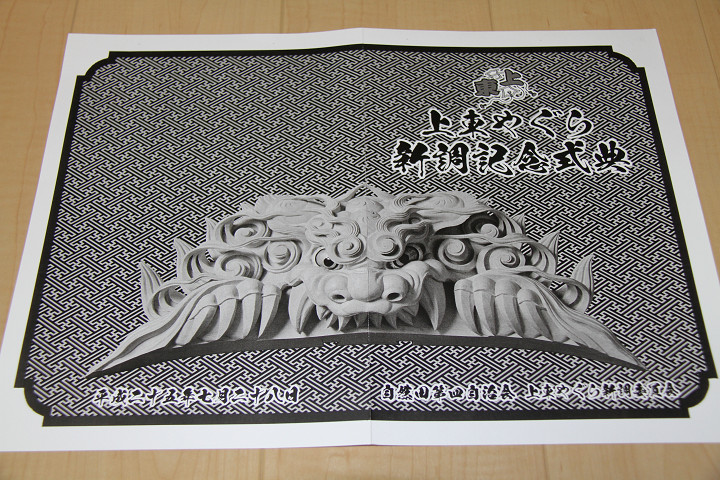 ![]() 彫物図柄解説、ちなみに新調記念式典の来賓にはカラーバージョンだそうです。 |