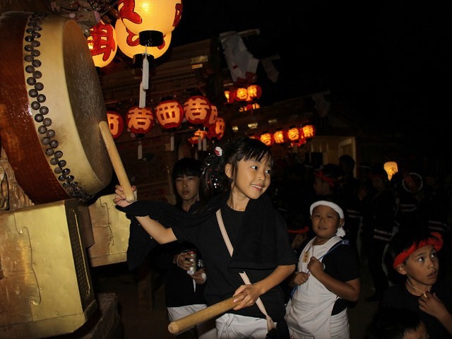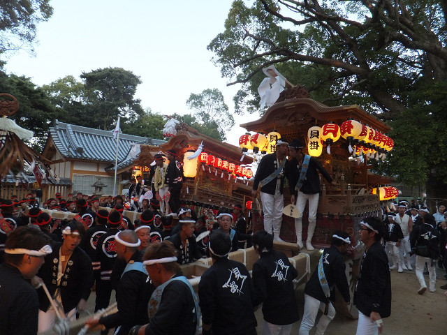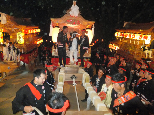 ![]() 3台のやぐらに燈がともり、エエ感じになってきました。 |