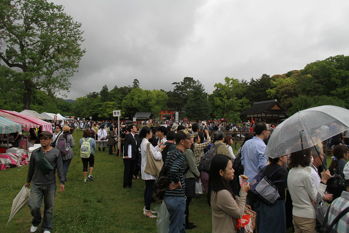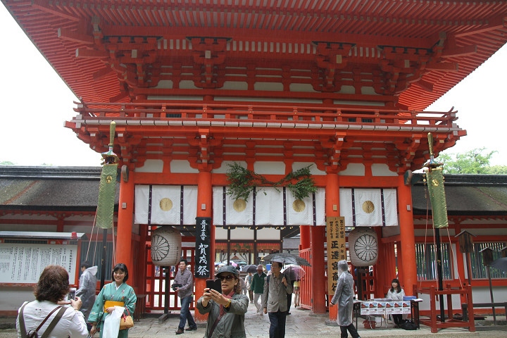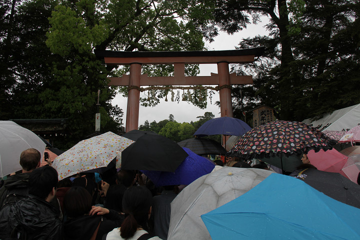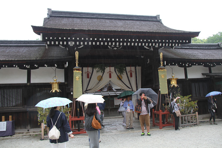 ![]() バスで上賀茂神社に行きたかったのですが交通規制で乗れず…。 やむを得ず雨の中、1時間程歩いて上賀茂神社へ向かいました。 |