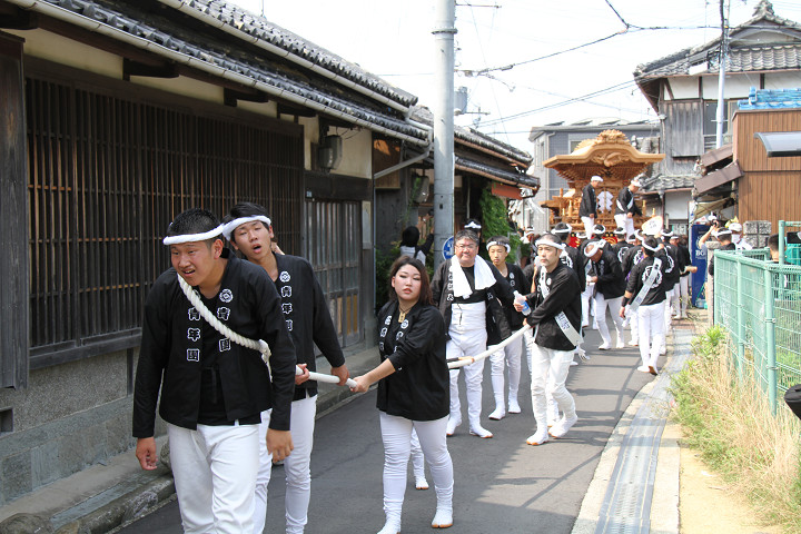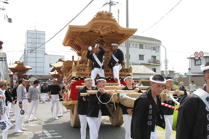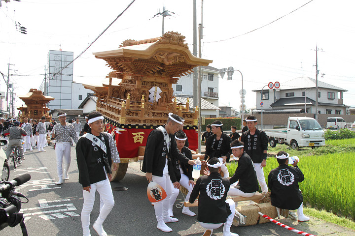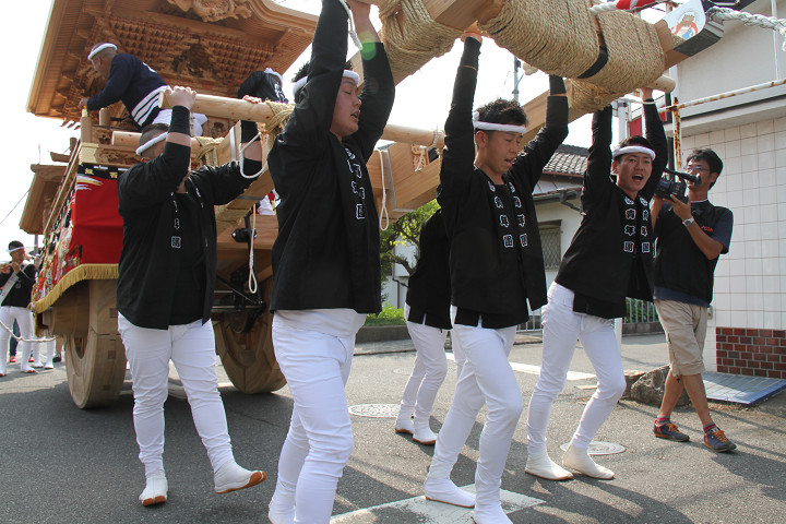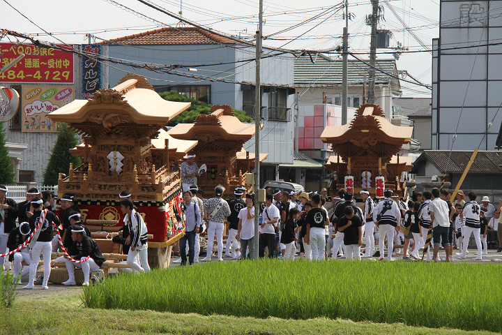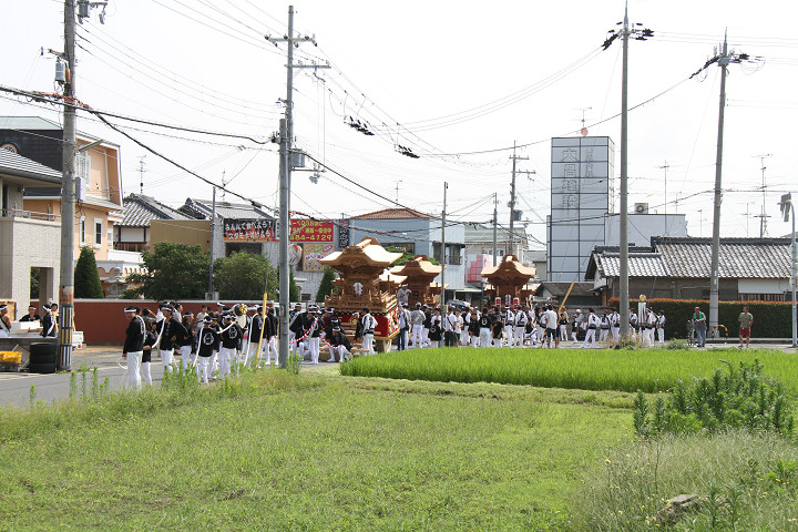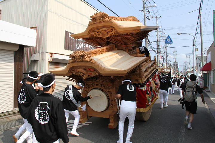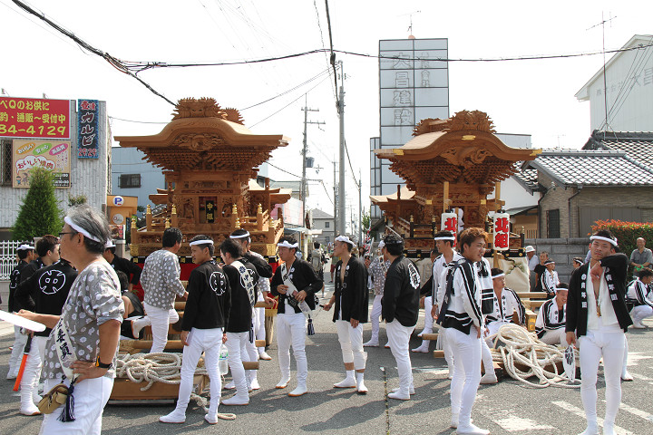 ![]() 岡田西組と一緒に岡田中組・岡田北組も御披露目曳行します。 |